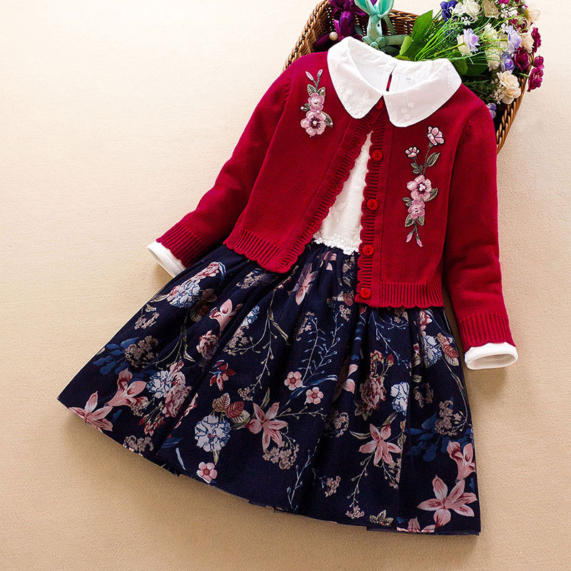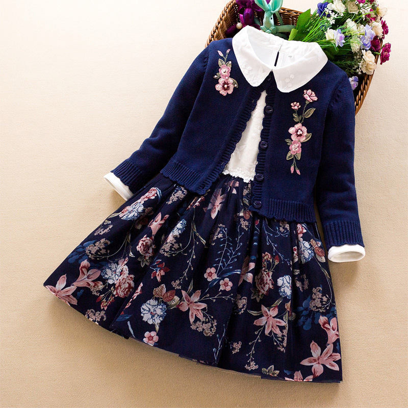 아동 의류 소녀 스웨터 원피스 세트 2021 봄 새로운 어린이 스웨터 세트 소녀 웨스턴 스타일 공주 치마스토어 가기