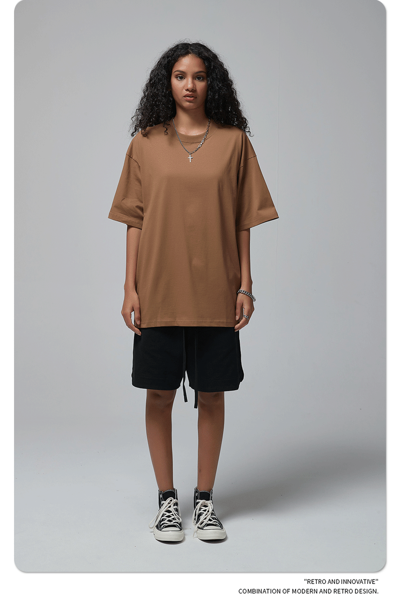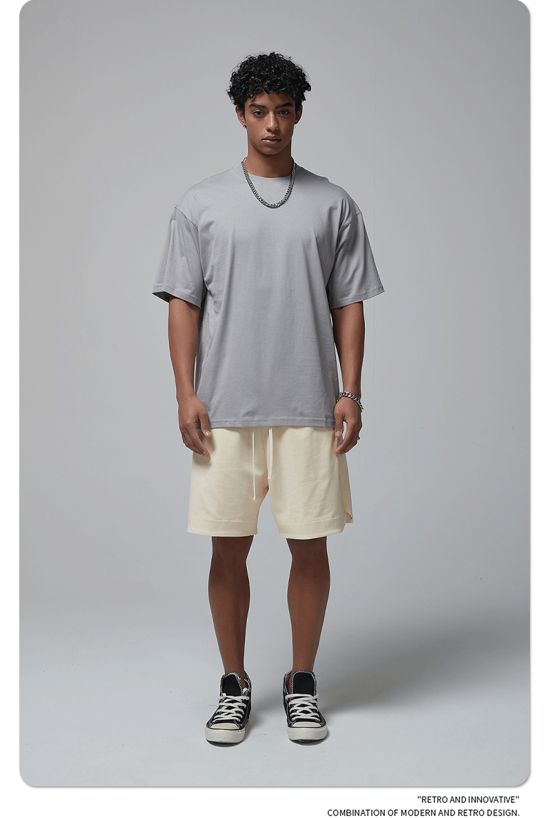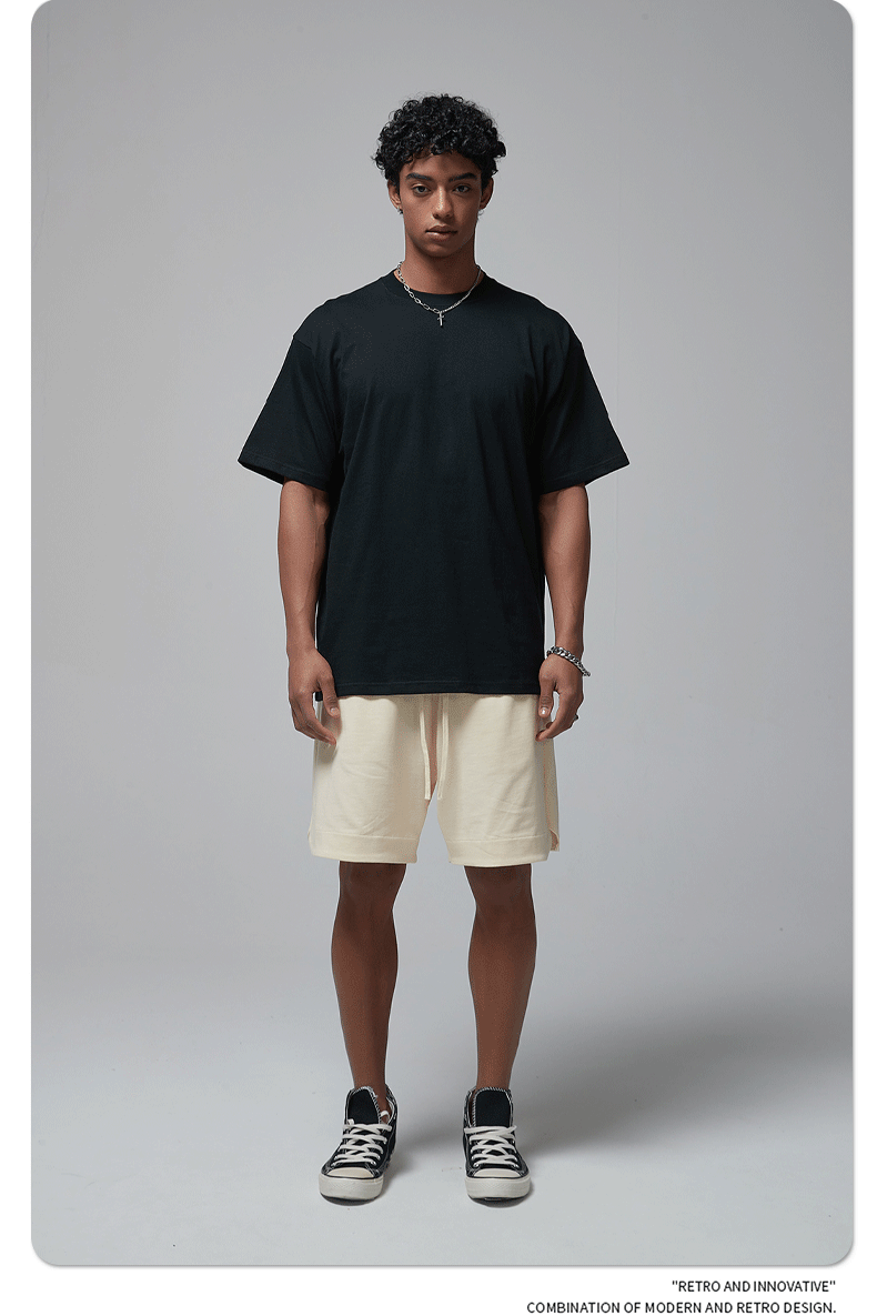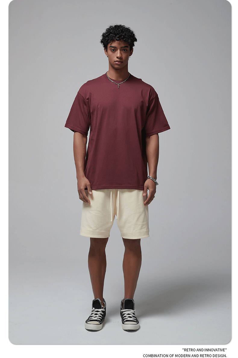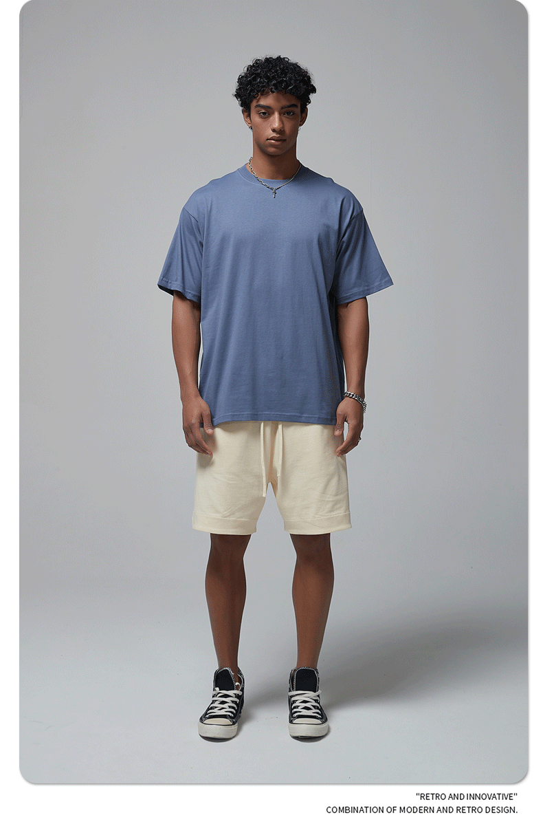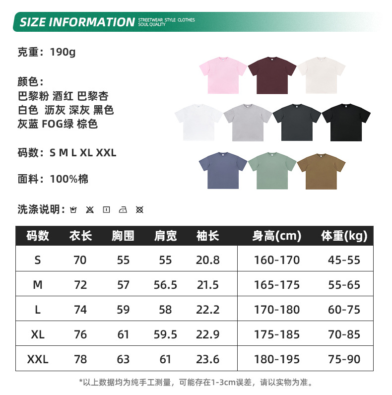 2025 신제품 190G 루즈 오버사이즈 남성 순면 티셔츠 트렌디 브랜드 반팔 빈 솔리드 컬러 t 기본 스타일스토어 가기