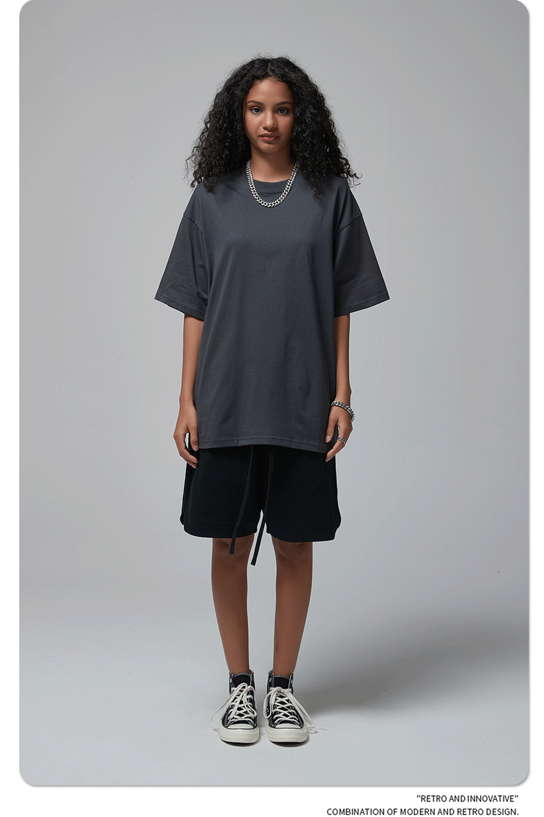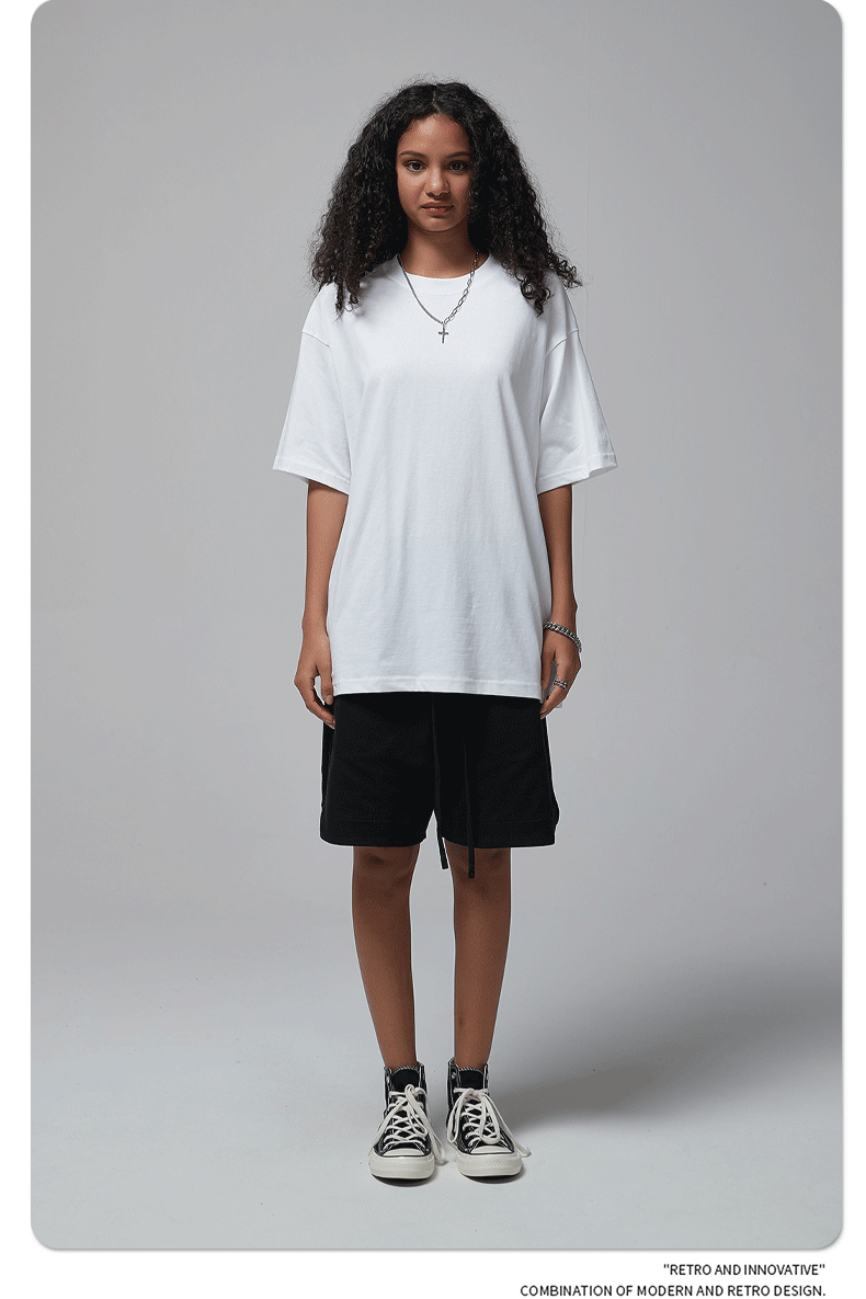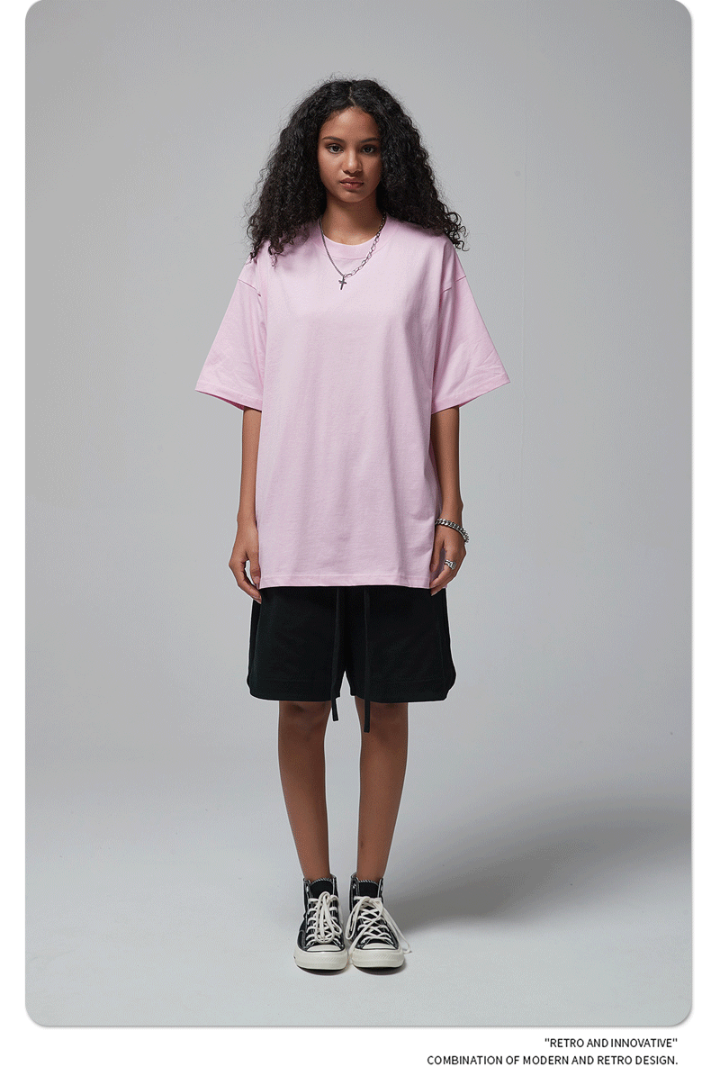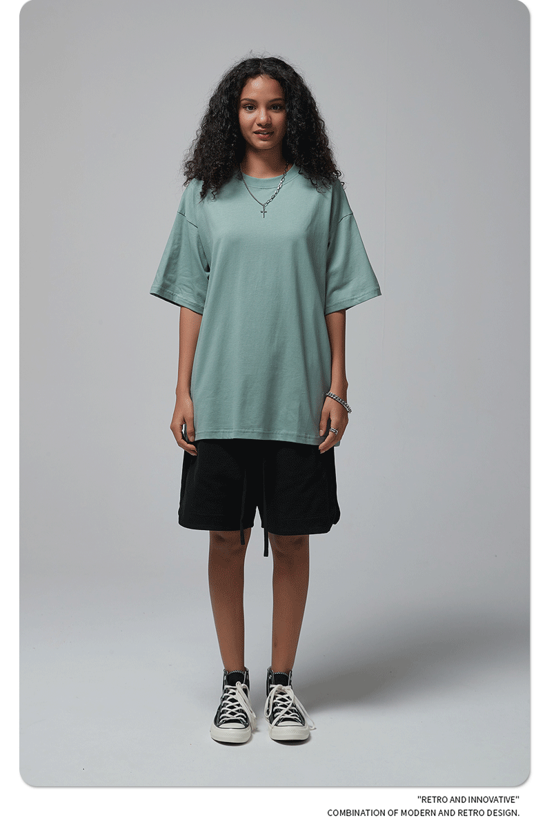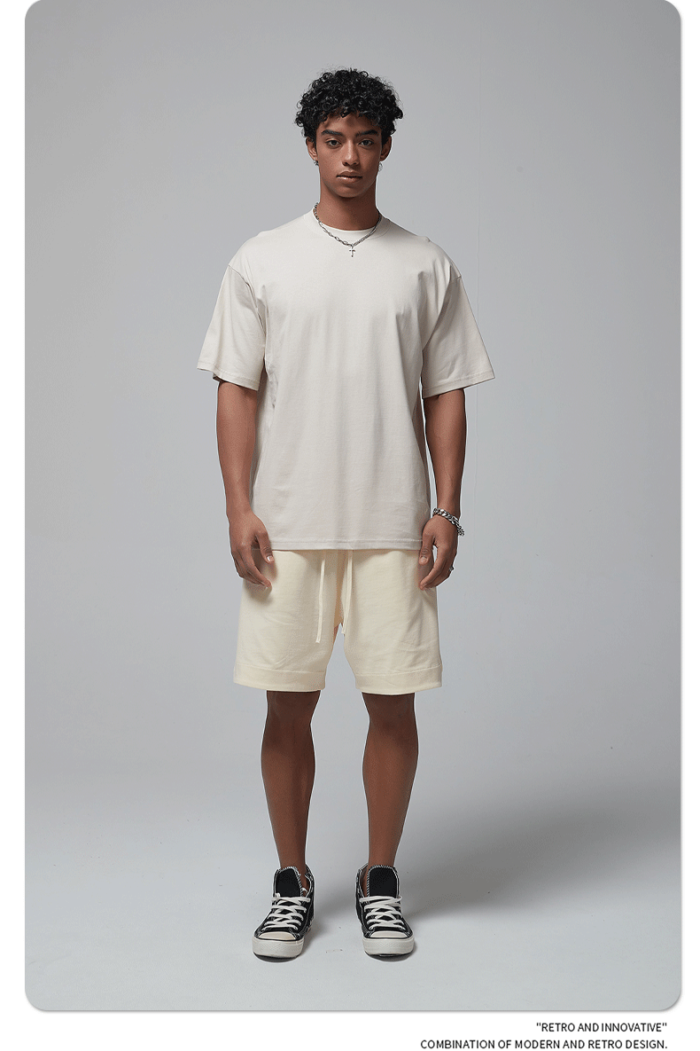 2025 신제품 190G 루즈 오버사이즈 남성 순면 티셔츠 트렌디 브랜드 반팔 빈 솔리드 컬러 t 기본 스타일스토어 가기