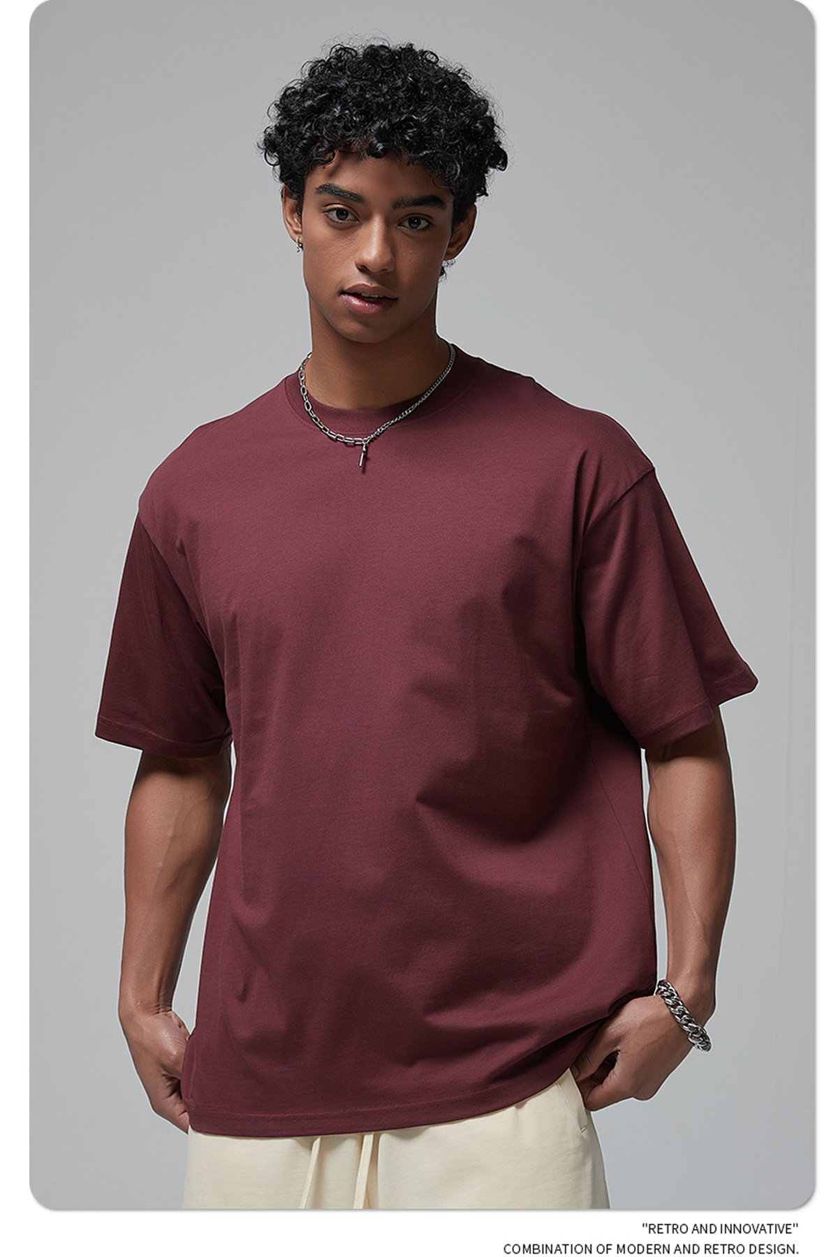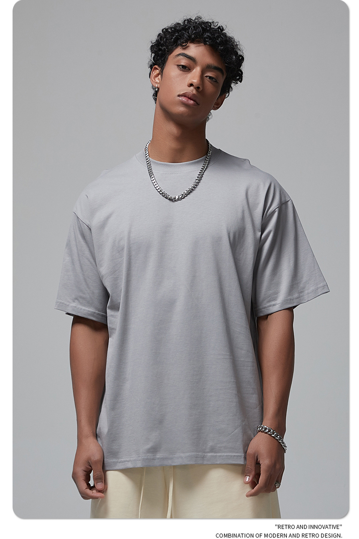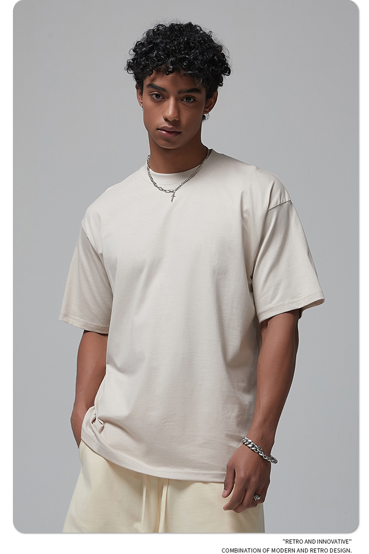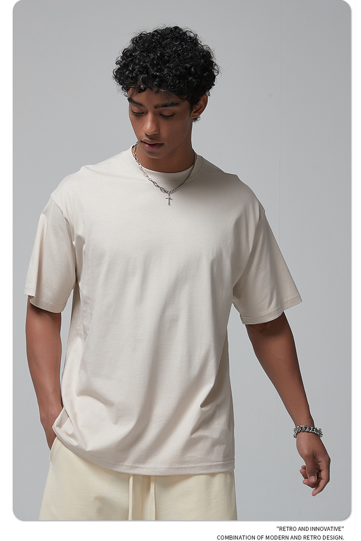 2025 신제품 190G 루즈 오버사이즈 남성 순면 티셔츠 트렌디 브랜드 반팔 빈 솔리드 컬러 t 기본 스타일스토어 가기