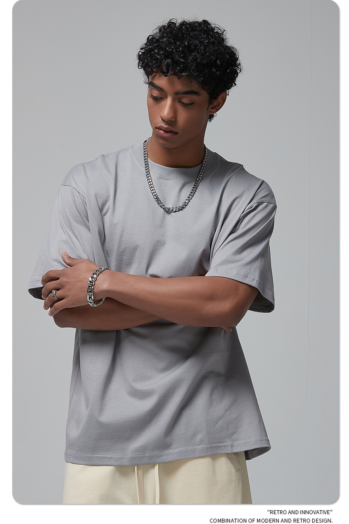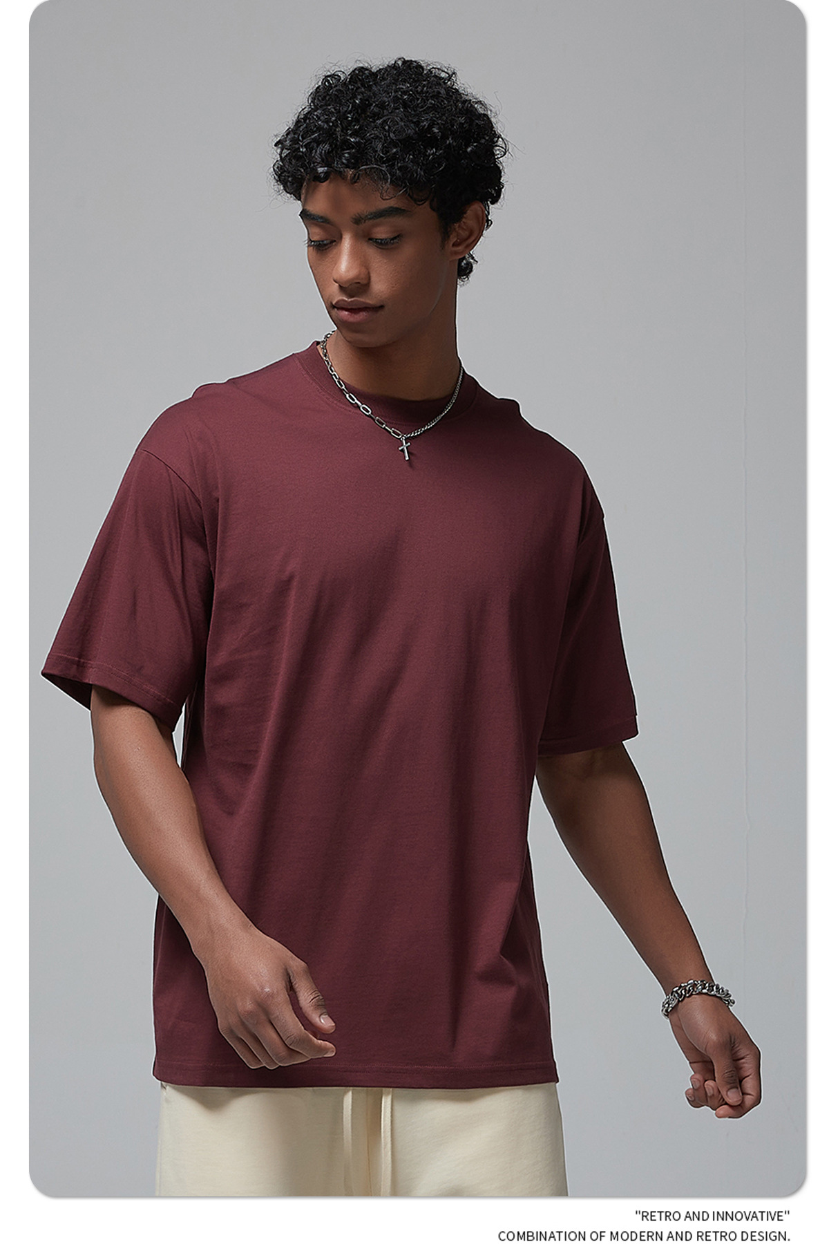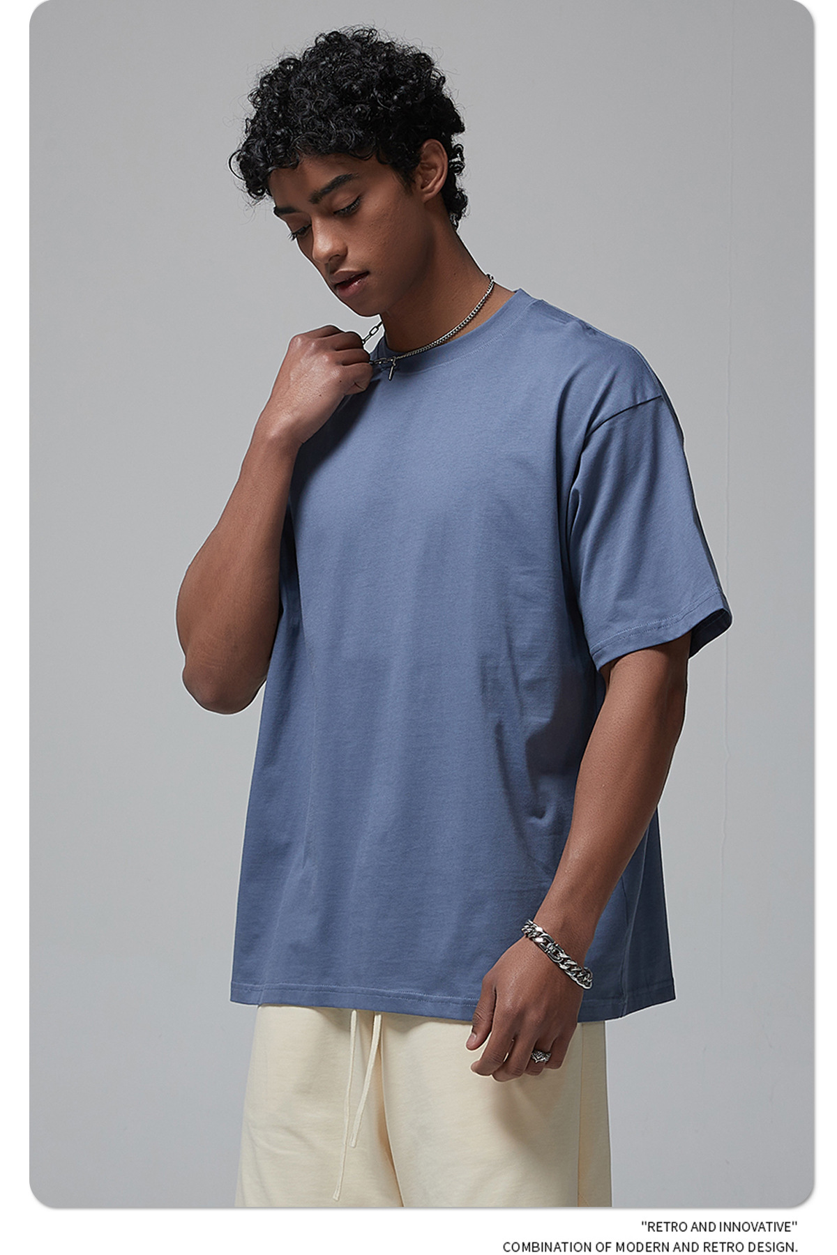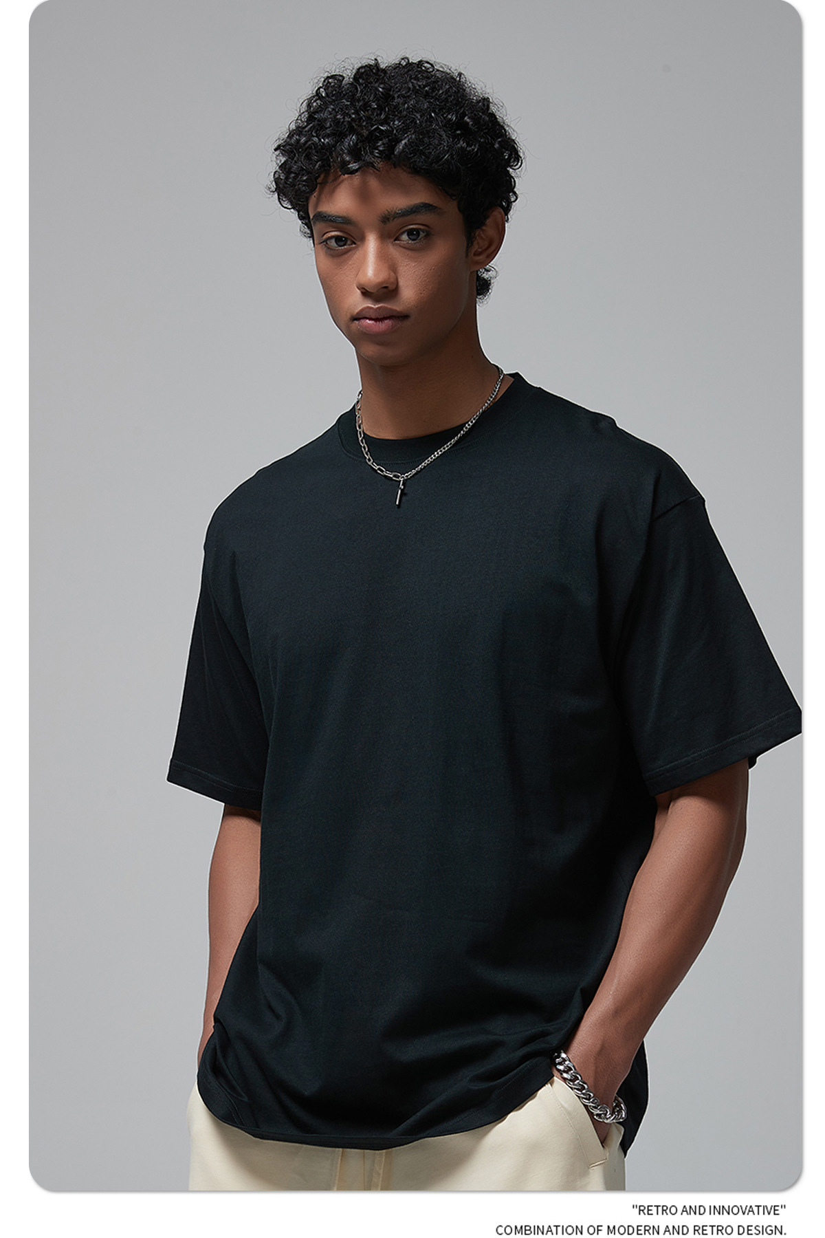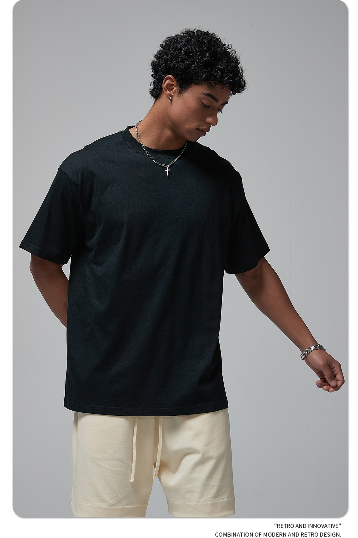 2025 신제품 190G 루즈 오버사이즈 남성 순면 티셔츠 트렌디 브랜드 반팔 빈 솔리드 컬러 t 기본 스타일스토어 가기