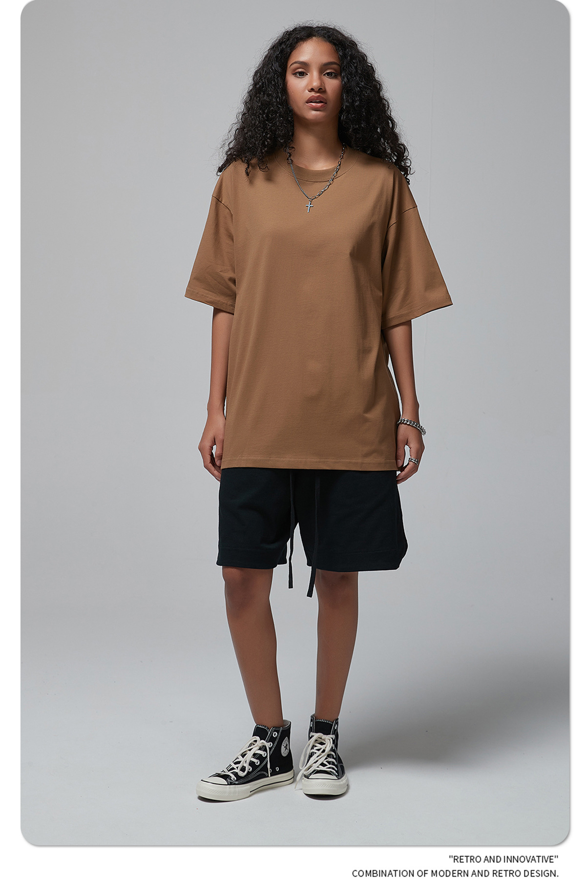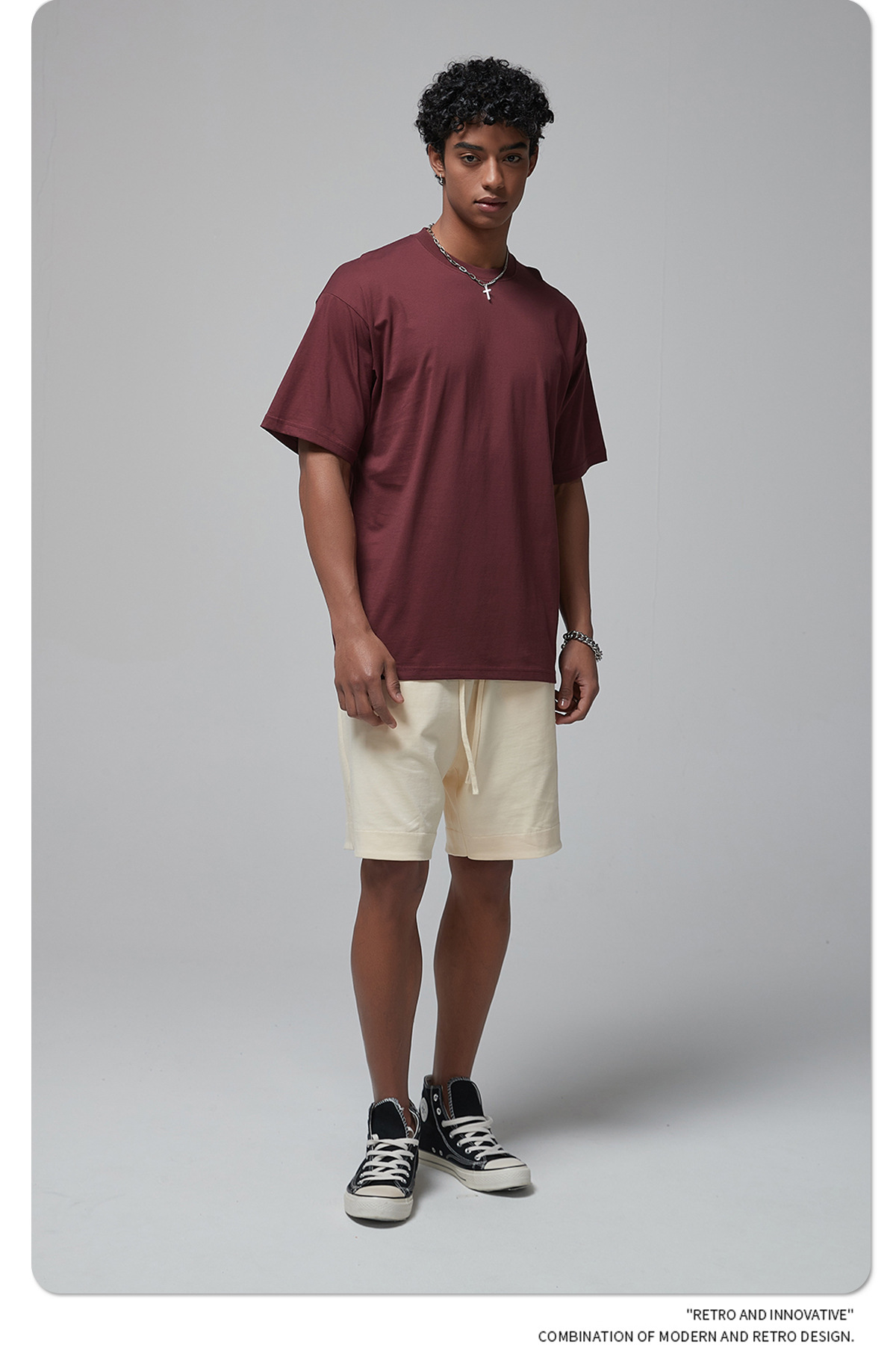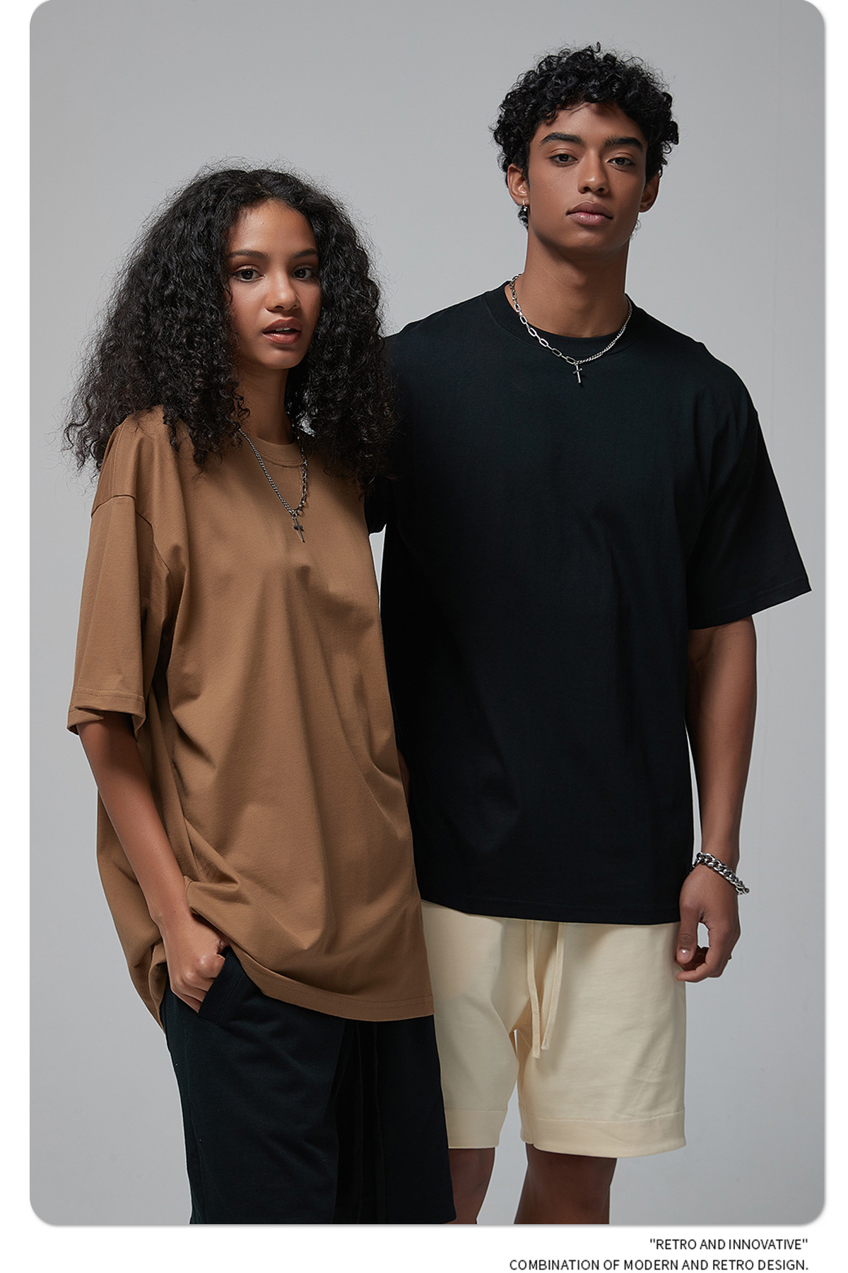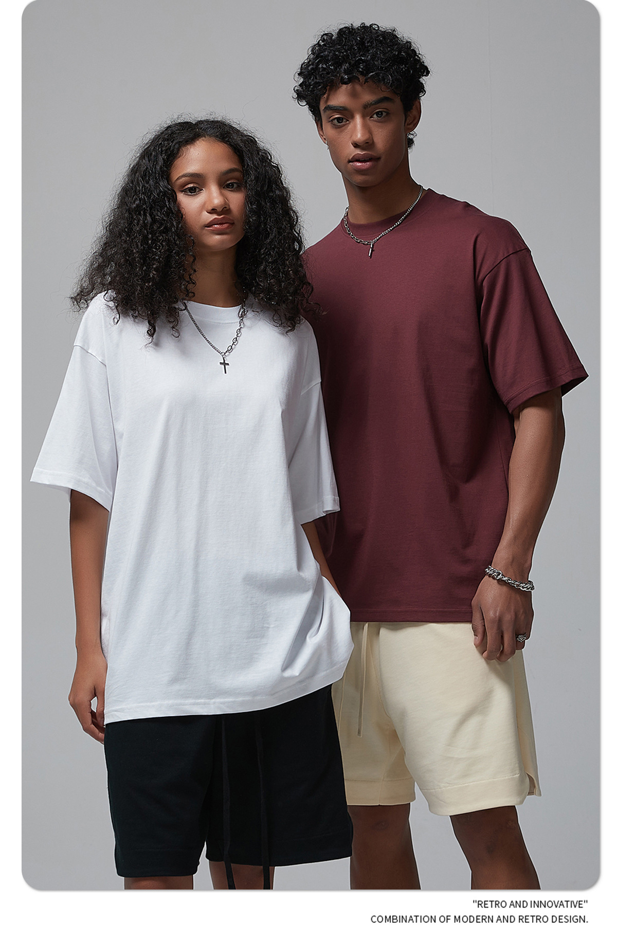 2025 신제품 190G 루즈 오버사이즈 남성 순면 티셔츠 트렌디 브랜드 반팔 빈 솔리드 컬러 t 기본 스타일스토어 가기