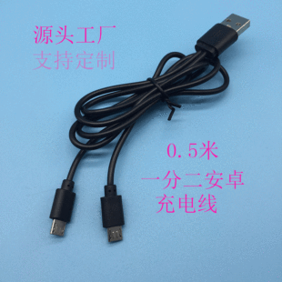 环保0.5米黑色一分二双安卓充电线一拖二micro USB双迈克5p充电线