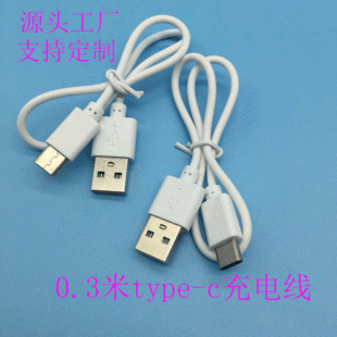 30cm白色环保USB对type-c充电线适用蓝牙耳机0.3米type-c充电短线
