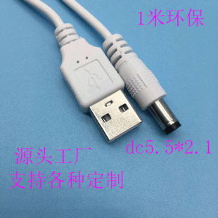 环保高品质USB转5521dc电源线1米白色USB转dc5.5*2.1加湿器充电线