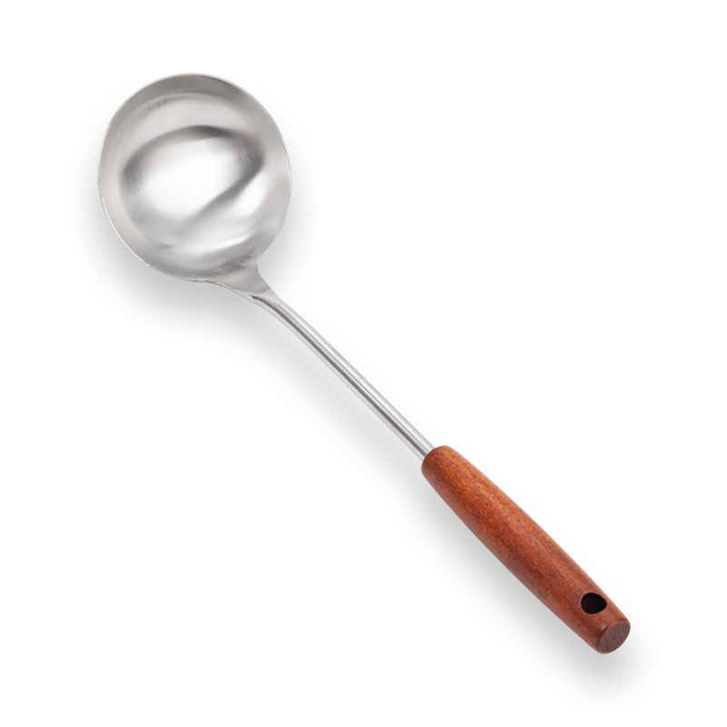 가정용 스테인레스 주걱 나무 손잡이 주걱 숟가락 수프 스푼 요리 스푼 삽 주방 요리 주걱 2 종 세트