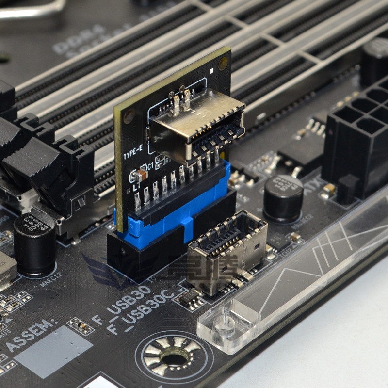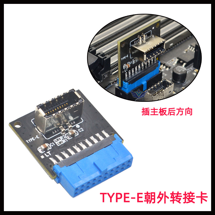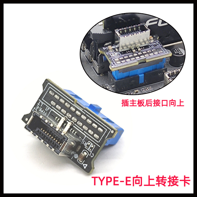 因新机箱都可能带TYPE-C前置接口了,但主板还没有更新,可以采用此板将主板USB3.0接口19PIN转为TYPE-E通过机箱线扩展TYPE-C安装在机箱前面。