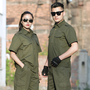 夏季短袖迷彩服套装男透气耐磨学生军训服户外工作劳保服军绿军装