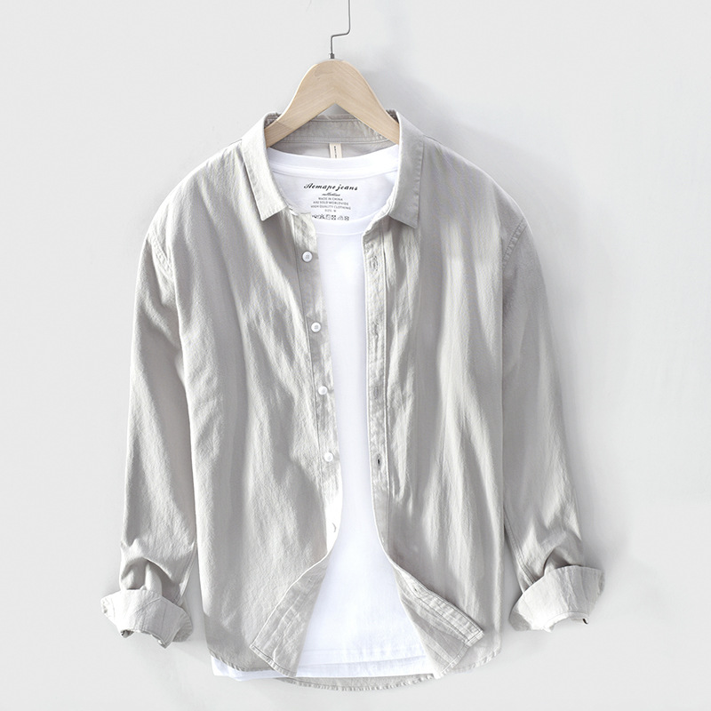 748 간단한 단색 남성 셔츠 가벼운 복고풍 코튼 셔츠 머리카락의 세대