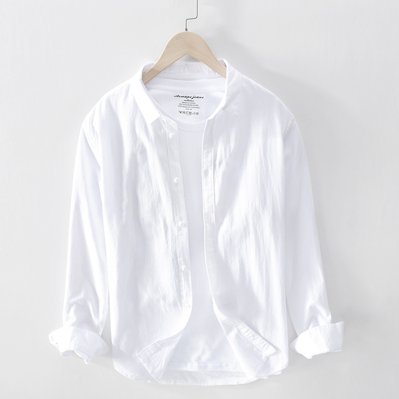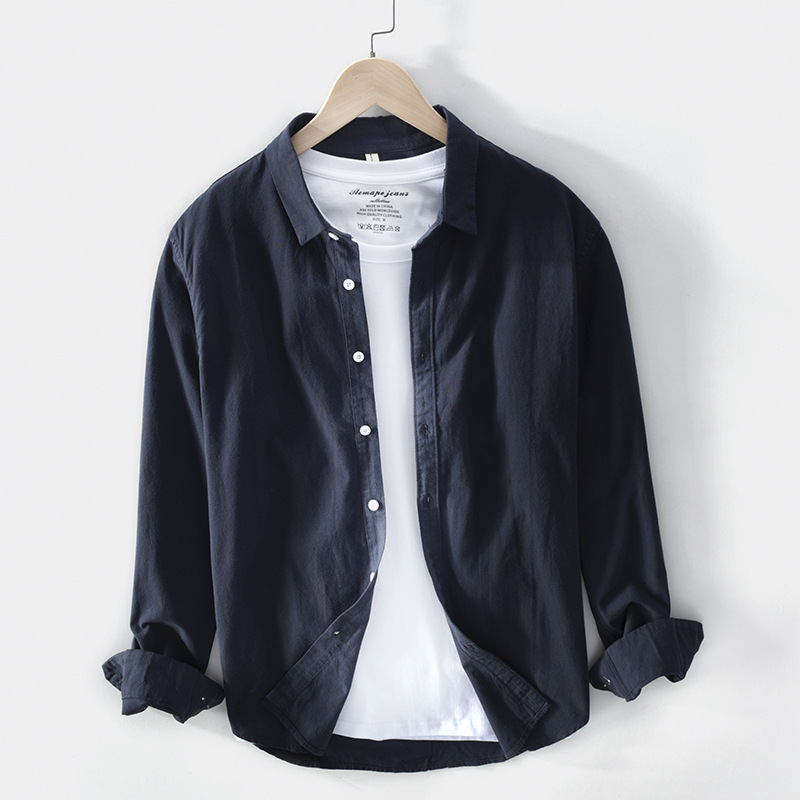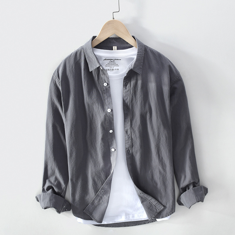 748 간단한 단색 남성 셔츠 가벼운 복고풍 코튼 셔츠 머리카락의 세대스토어 가기