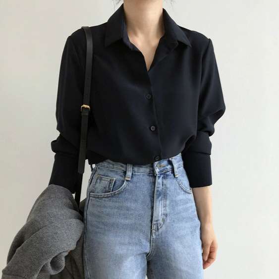 쉬폰 셔츠 여성용 2023 가을 새로운 한국 루즈한 슬림 베이스 셔츠 블랙 프로페셔널 OL 올매치 탑 트렌디스토어 가기