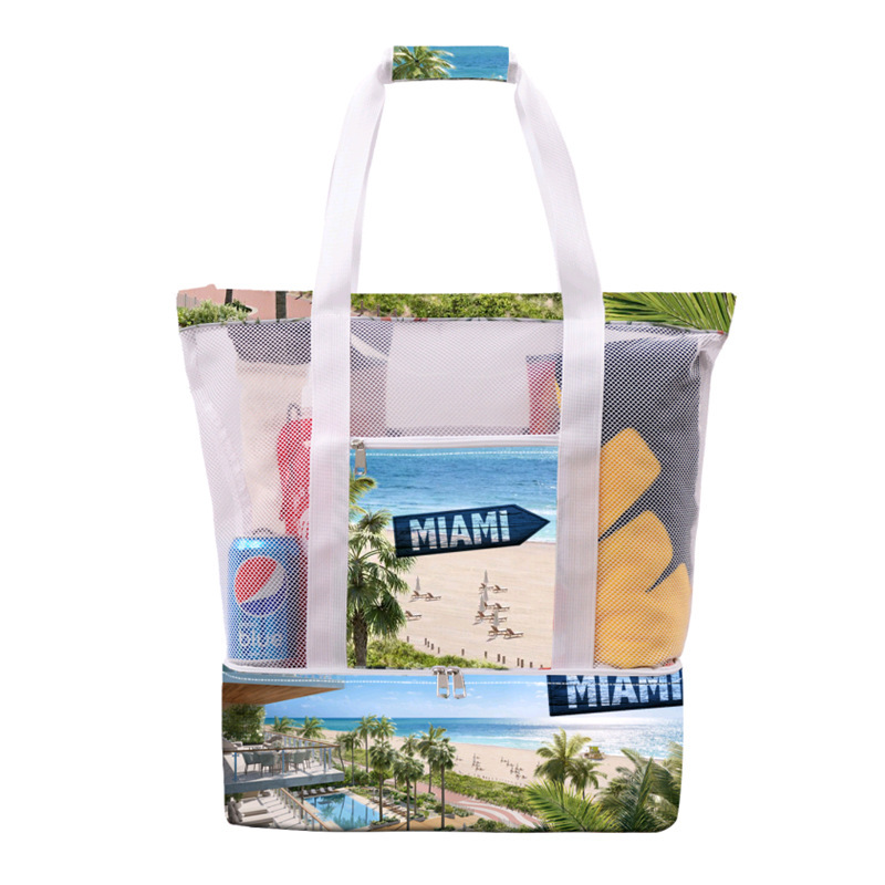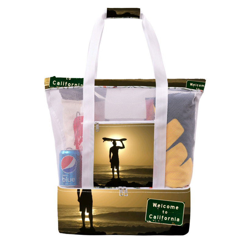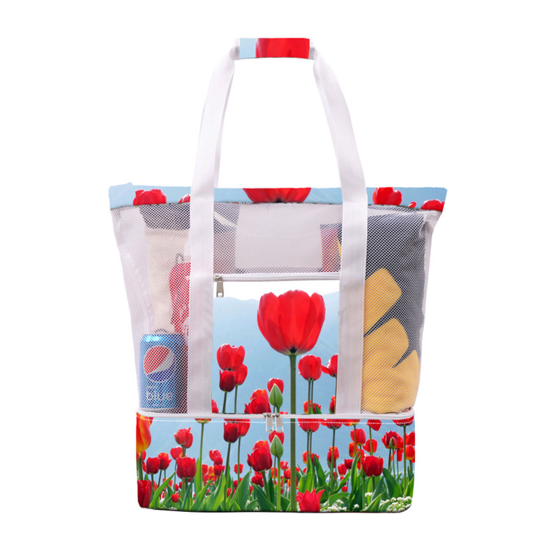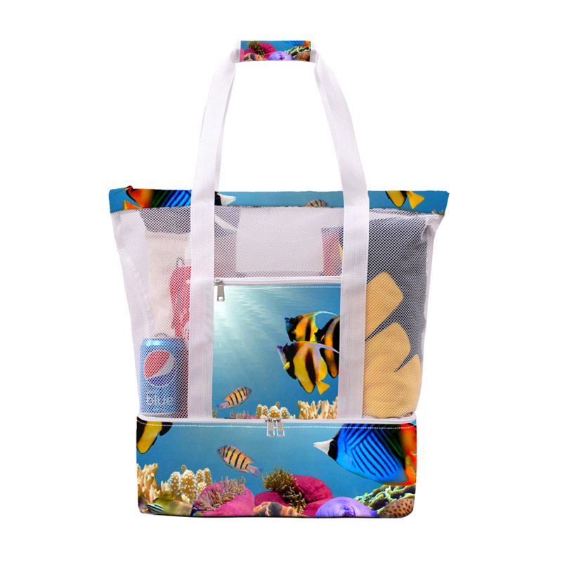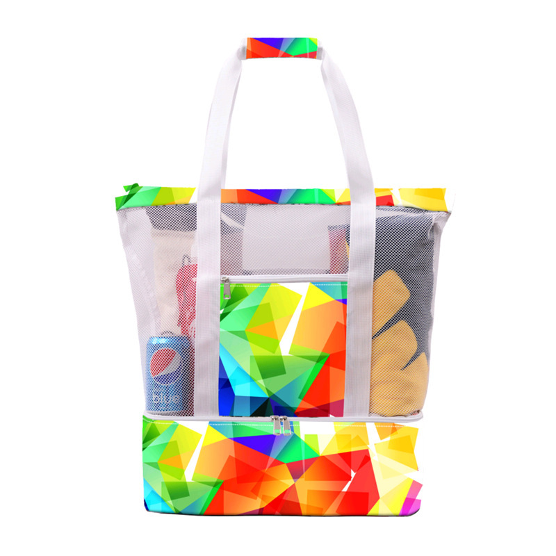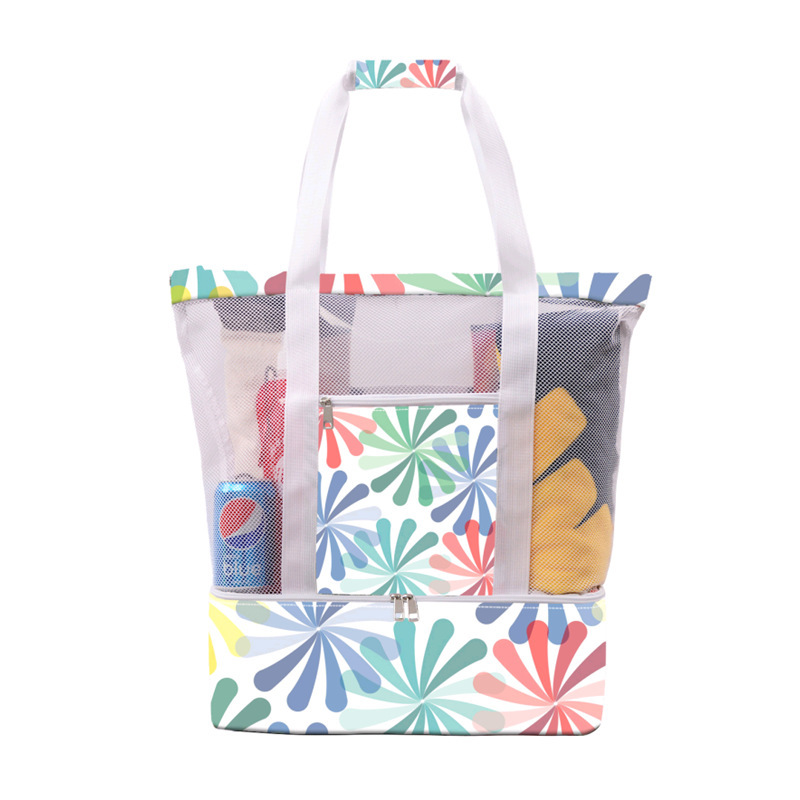 40가지 색상의 비치백, 패셔너블한 아웃도어 휴대용 메쉬 다기능 건습 분리 피크닉 보냉백