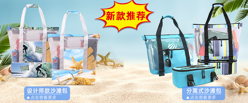 40가지 색상의 비치백, 패셔너블한 아웃도어 휴대용 메쉬 다기능 건습 분리 피크닉 보냉백스토어 가기