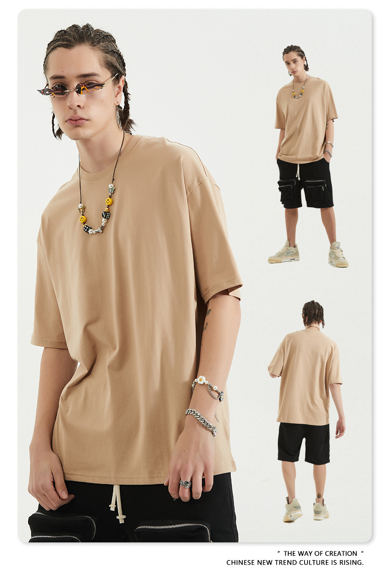 BE 남자 2025 년 십대 솔리드 컬러 퓨어 코튼 남성용 반팔 담요 트렌디 브랜드 루즈 반팔 티셔츠 남성용 여름스토어 가기