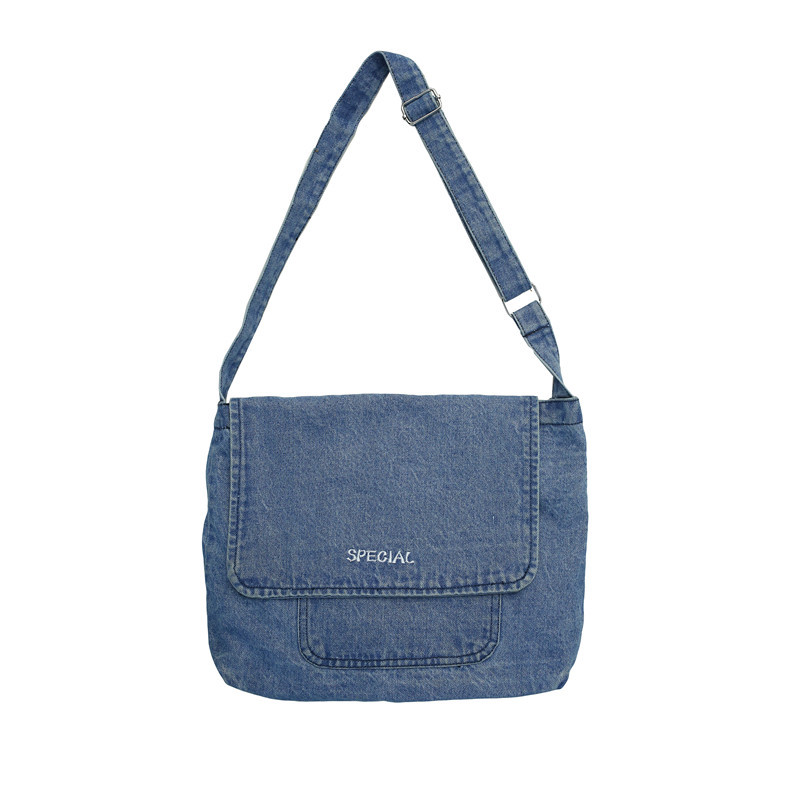80261 # 간단한 학생 데님 크로스 바디 백 대용량 일본식 간단한 어깨 천 가방 봄 2023스토어 가기