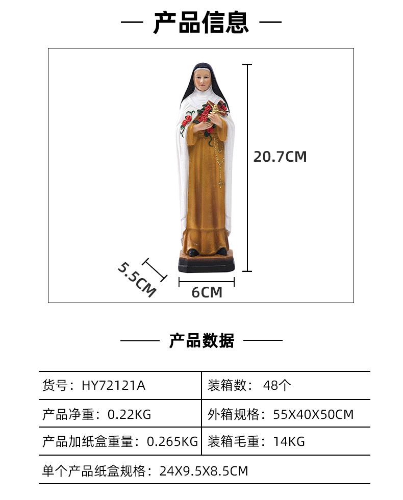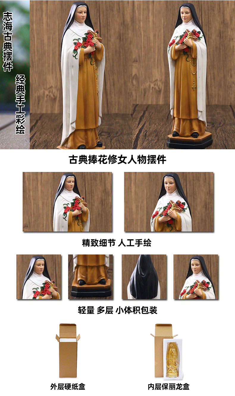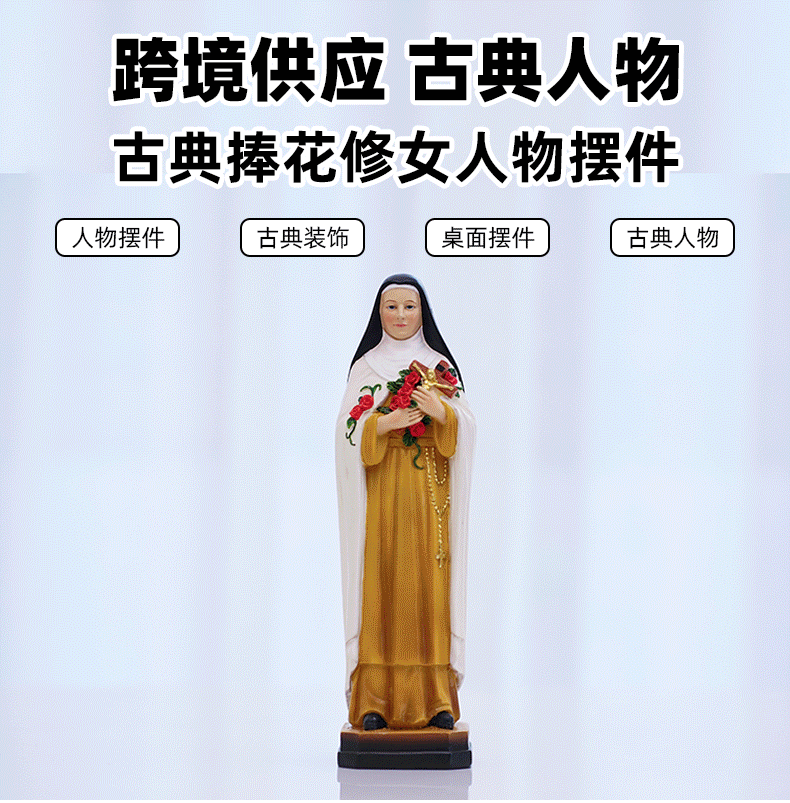 국경 공급 업체 20.7CM 높은 클래식 꽃다발 수녀 장식 실내 장식 선물 선물 수지 공예스토어 가기
