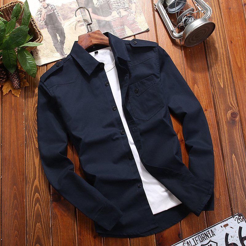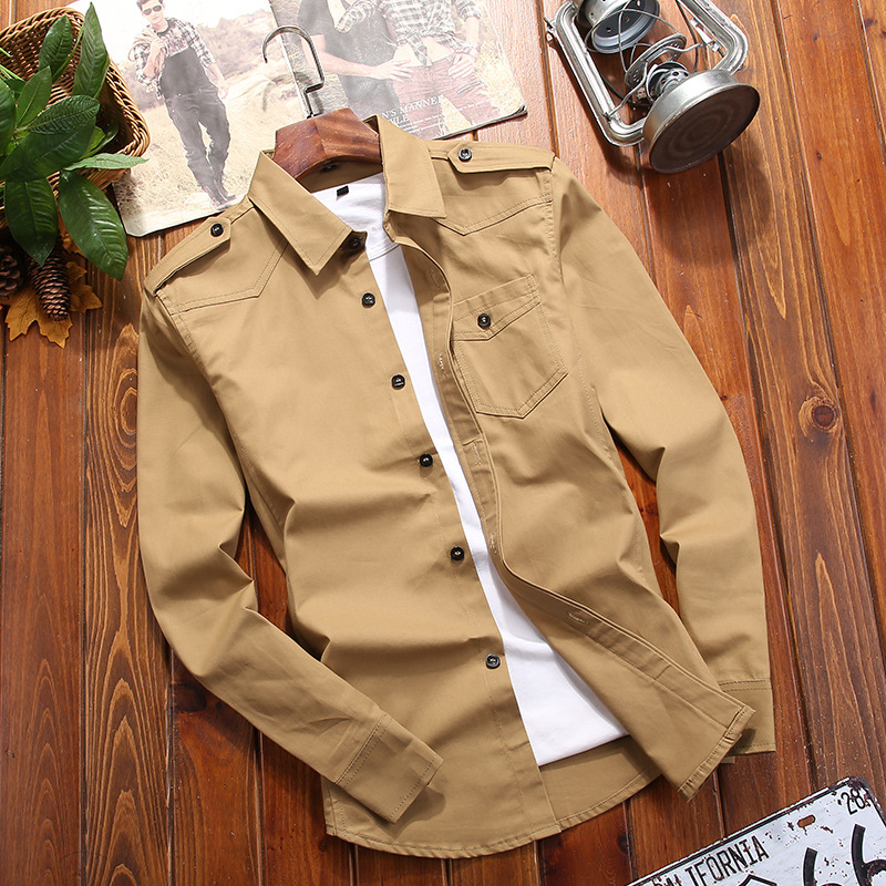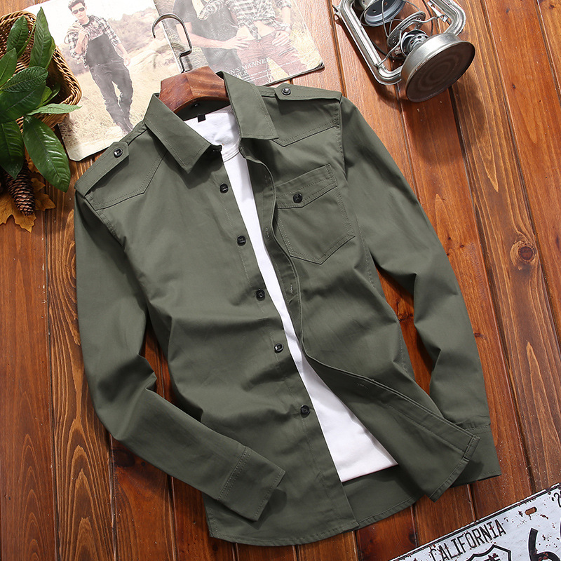 봄과 가을 새로운 순면 단색 남자의 군복 플러스 사이즈 캐주얼 모든 경기 십대 잘 생긴 카키 탑스토어 가기