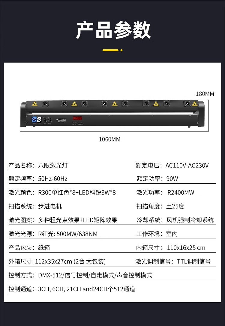 8구 레이저 조명, 8구 음성 제어 레이저 조명, 무대 조명, KTV 디스코 조명, 바 DMX512 무빙 헤드 플래시 라이트