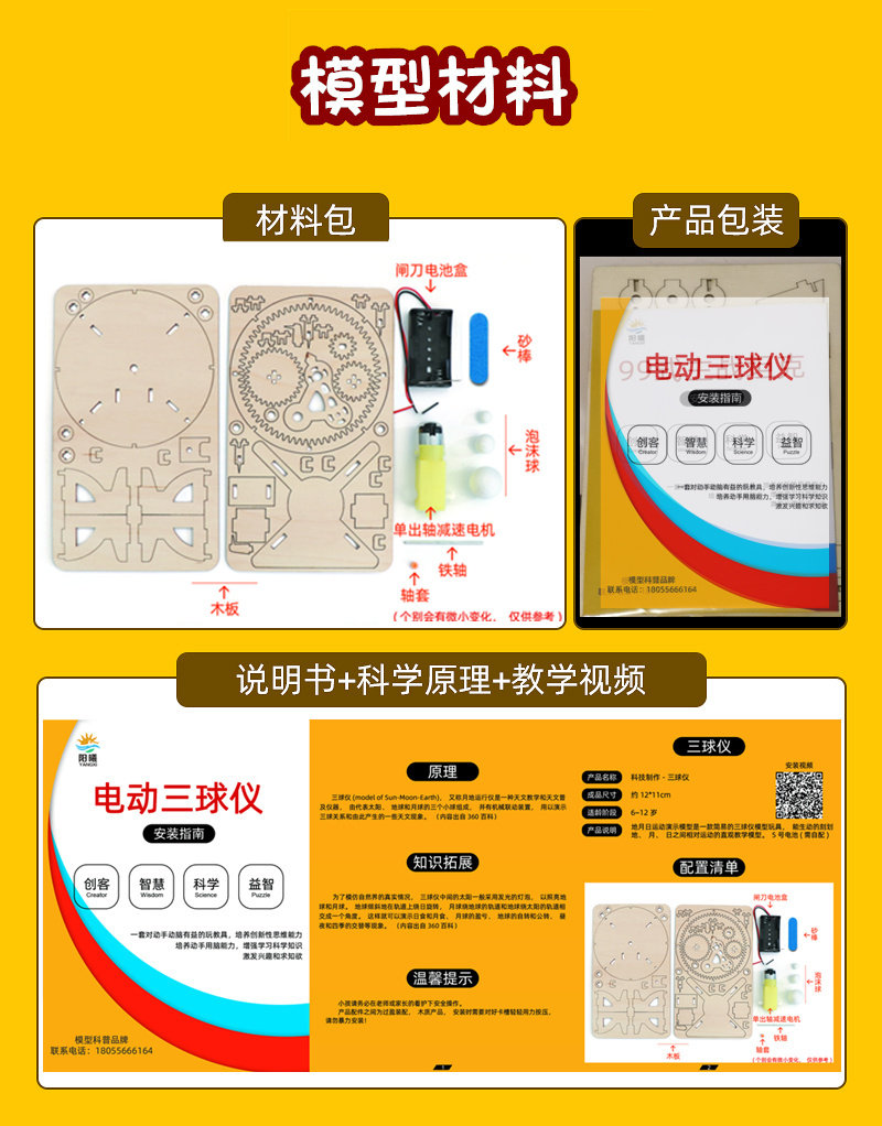 천체 시범 악기 3 구 악기 전기 태양-지구-달 모형 학생 수제 과학 실험 장비 교육