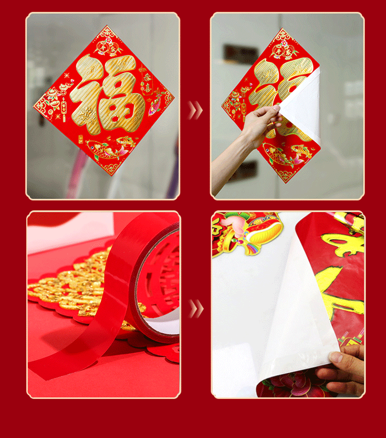 봄 축제 커플 렛 사각 투명 테이프 커플 렛 빨간 행복한 단어 행운의 단어 창 자동차 스티커 포스터 흔적이없는 특수 양면 접착 제품