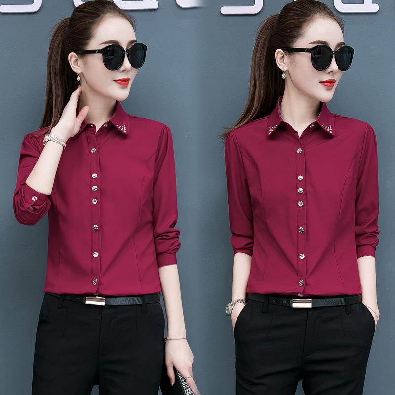 봄과 가을 새로운 흰색 셔츠 여성의 긴팔 한국어 컬러 블록 격자 무늬 전문 원피스 블랙 작업복 여성의 작업복 셔츠