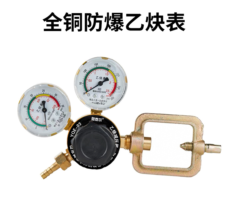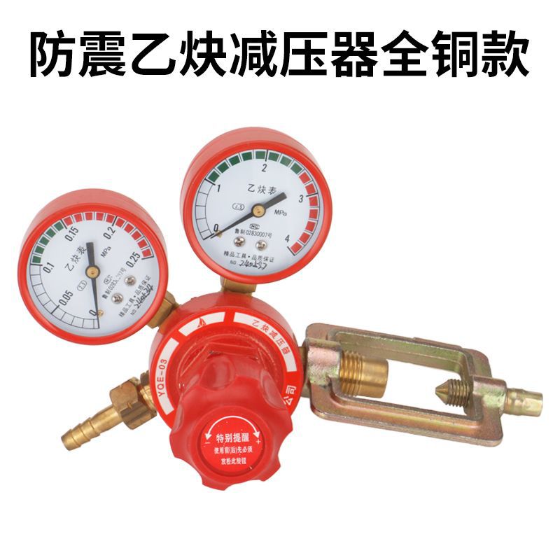 충격 방지 YQE-03 아세틸렌 미터 압력 감소 밸브 압력 감속기 모든 구리 폭발 방지 충격 방지 고무 슬리브 압력 조절기 압력 게이지