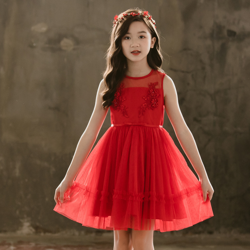 어린이 의류 봄과 여름 소녀 원피스 흰색 거즈 공주 스커트 붉은 거품 소매 어린이 6 월 1 일 공연 스커트 국경 대외 무역