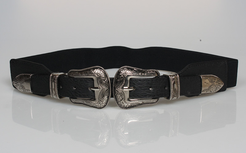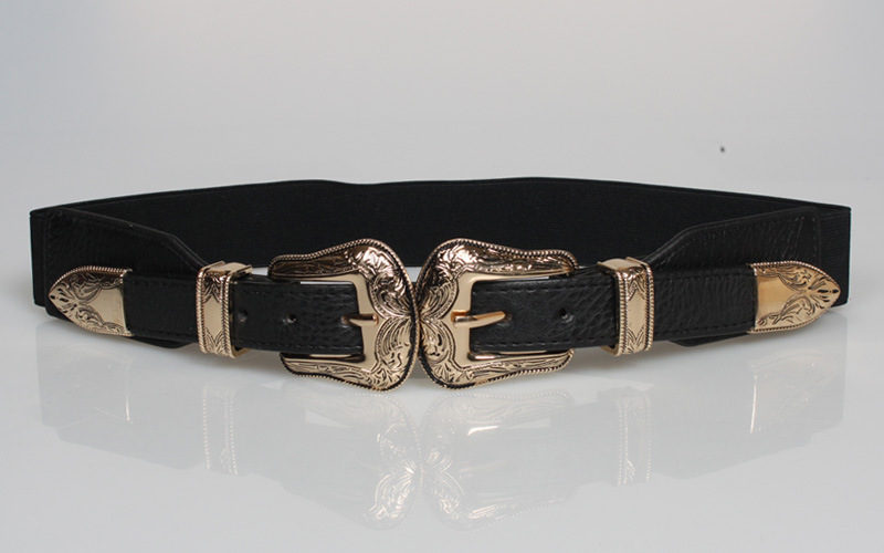 유럽과 미국의 더블 버클 다용도 탄성 벨트 여성의 넓은 장식 깃털 복고풍 AliExpress 대외 무역 허리 커버 블랙 조각 버클