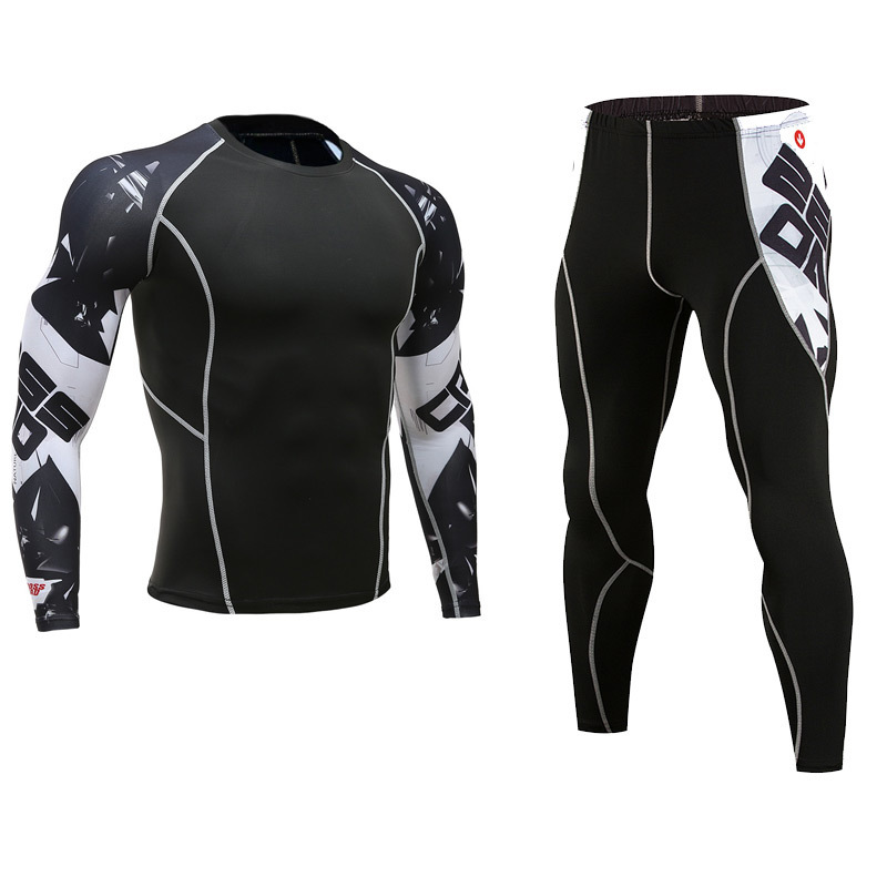 유럽과 미국 크로스 보더 스포츠 피트니스 세트 스타킹 남자의 긴 소매 피트니스 티셔츠 속건 슈퍼 탄성 PRO 세트