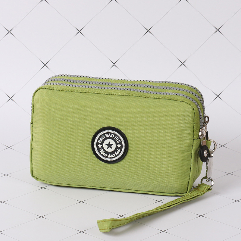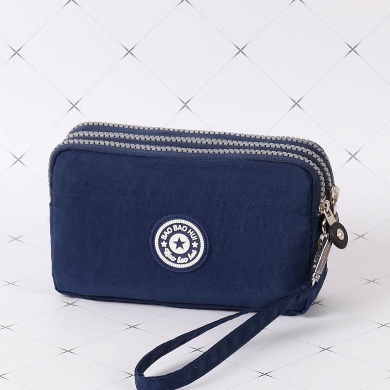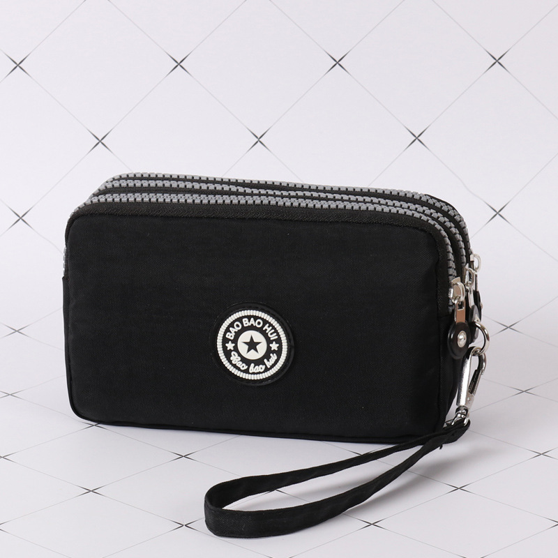三层拉链超大容量,可以放6.5英寸以内大屏手机,可以平方百元大钞。同时可以容纳充电宝,钥匙、零钱、首饰、手机、等!一些小东西。