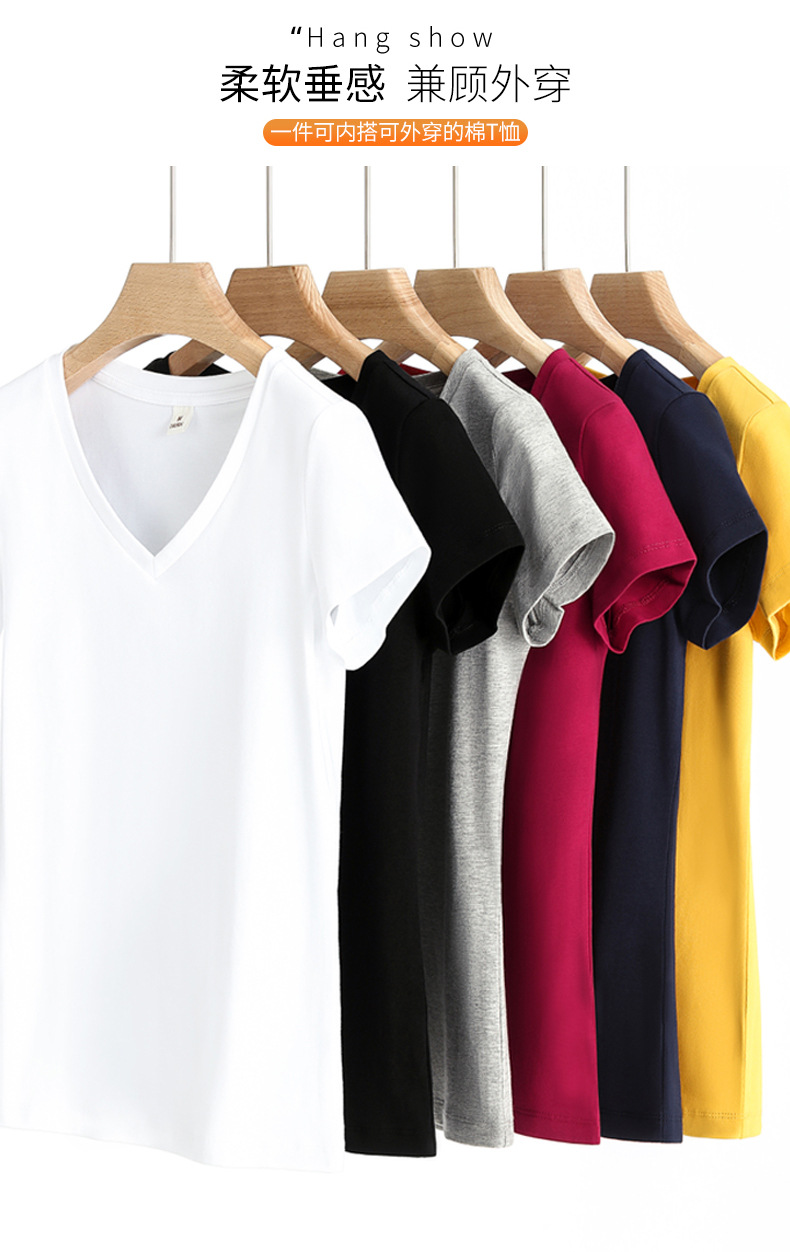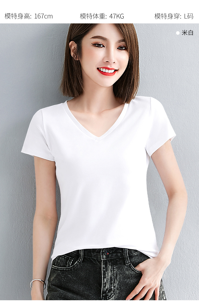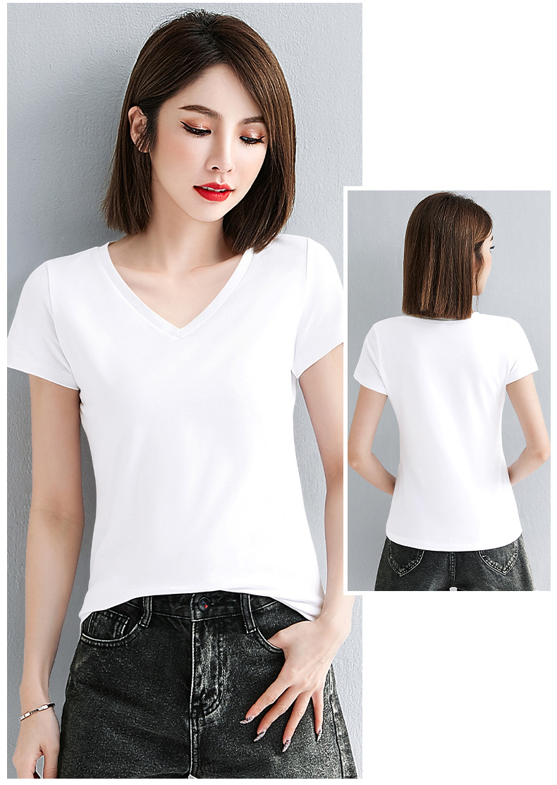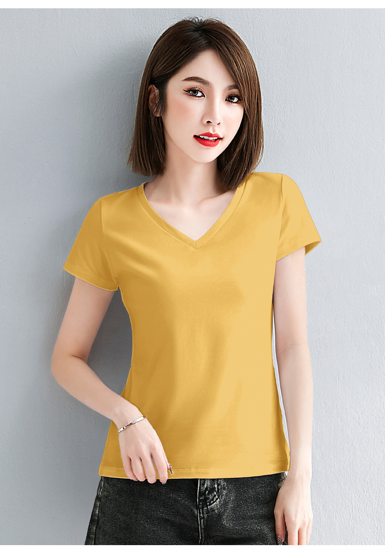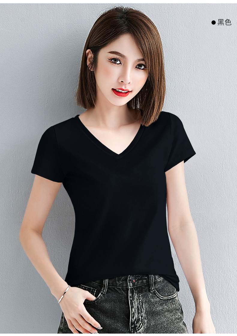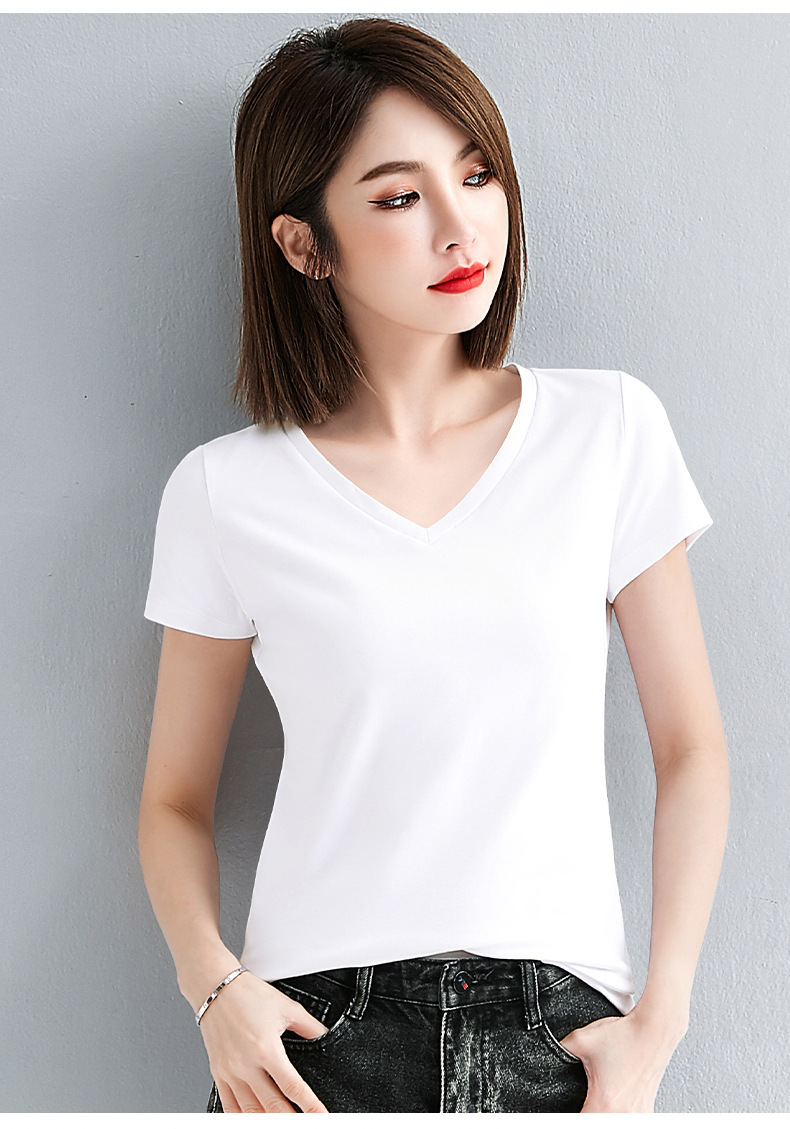 브이넥 반소매 티셔츠 여성용 슬림 핏 여름 여성용 유행 티셔츠 탑