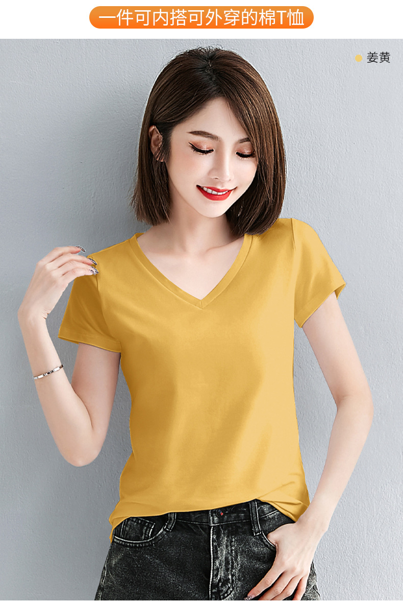브이넥 반소매 티셔츠 여성용 슬림 핏 여름 여성용 유행 티셔츠 탑스토어 가기