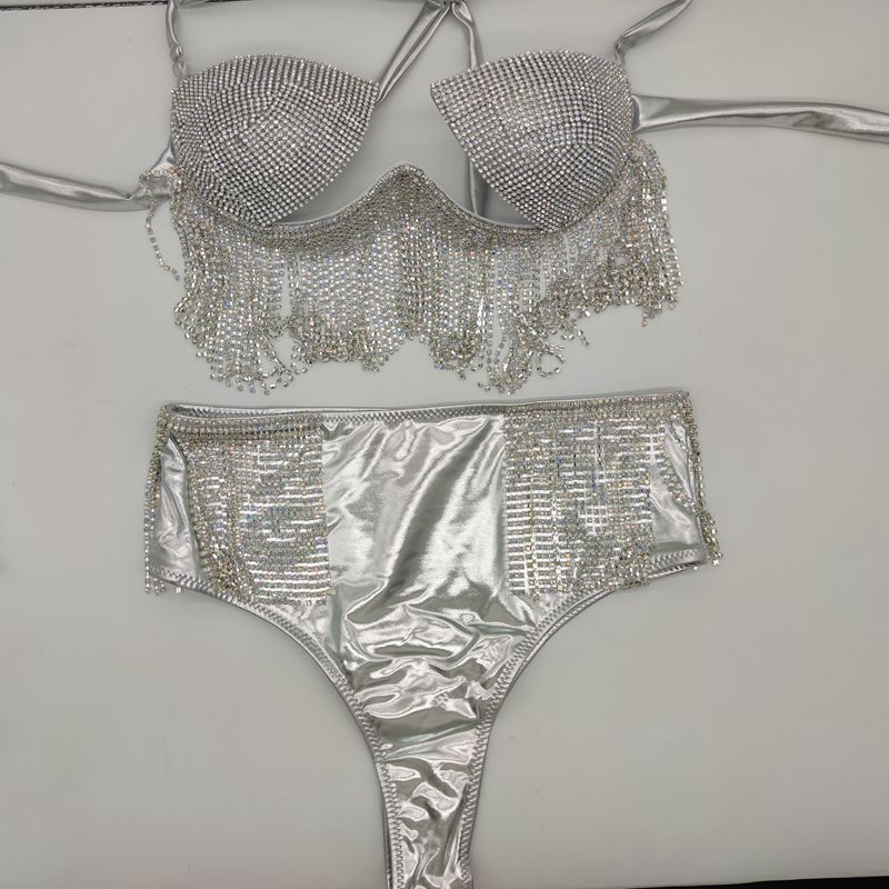 2020新款钢托硬杯bikini钻石泳衣钻石流苏bikini高腰比基尼夜店服