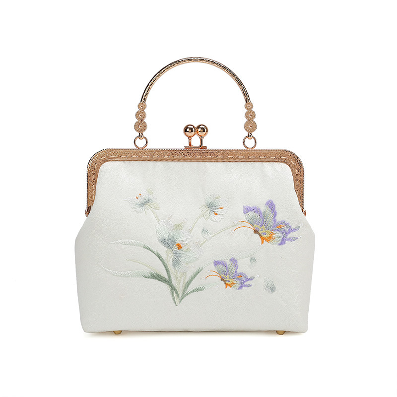 실크 자수 금속 잠금 버클 골동품 가방 골동품 치파오 한푸 가방 화이트 핸드백 크로스 바디 백