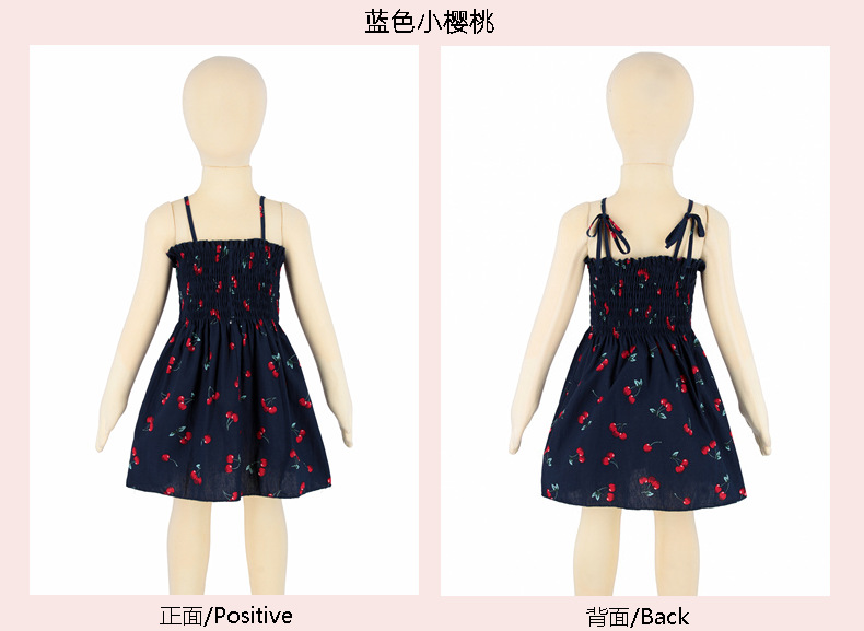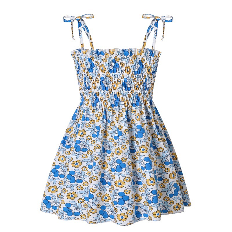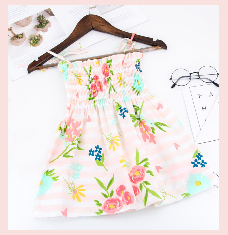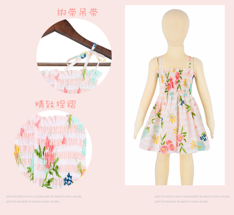유럽과 미국의 아기 여름 원피스, 어린이 패션 원피스, 얇은 여자아이 스타일리시한 멜빵 원피스, 어린이 꽃무늬 원피스