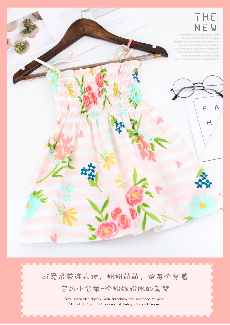 유럽과 미국의 아기 여름 원피스, 어린이 패션 원피스, 얇은 여자아이 스타일리시한 멜빵 원피스, 어린이 꽃무늬 원피스스토어 가기