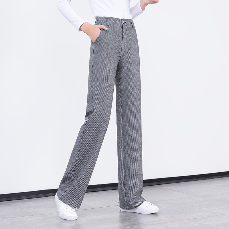 봄 2024 새로운 Houndstooth 스트레이트 캐주얼 바지 여성 바지 한국식 바지 느슨한 와이드 레그 바지 여자 20128스토어 가기