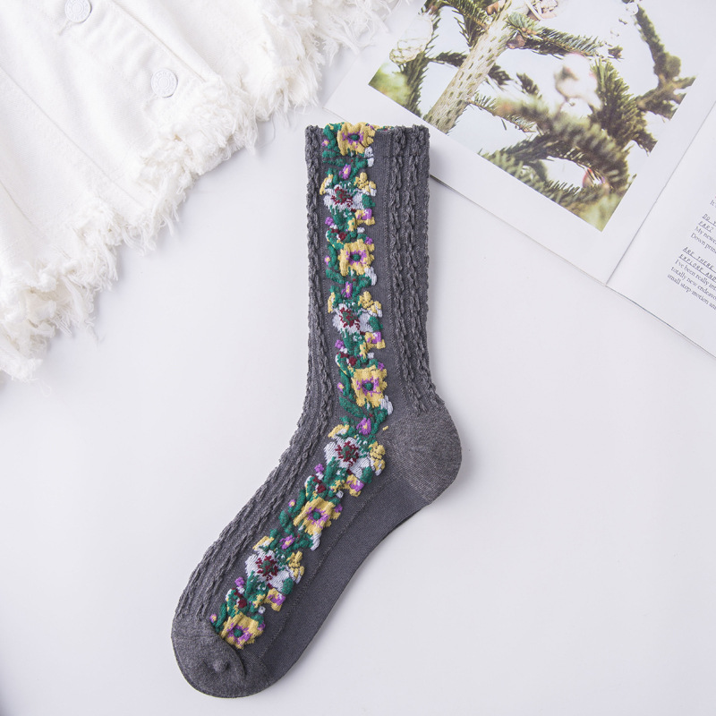 신상 레트로 다크 플라워 롱삭스 인기 여성 양말 꼬임무늬 나선형 랴오위안 도매 트렌디 컬러풀 코튼 편안함