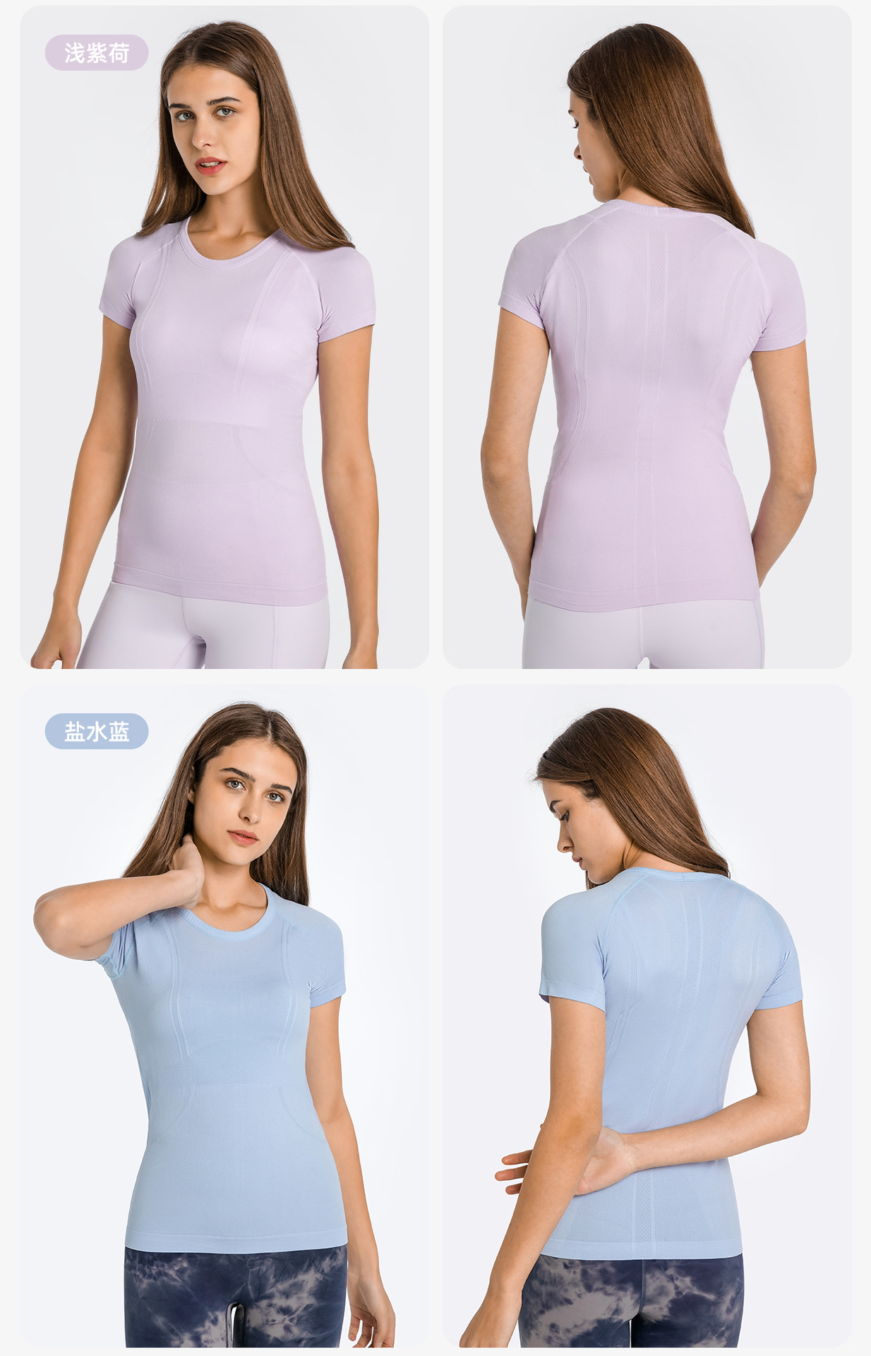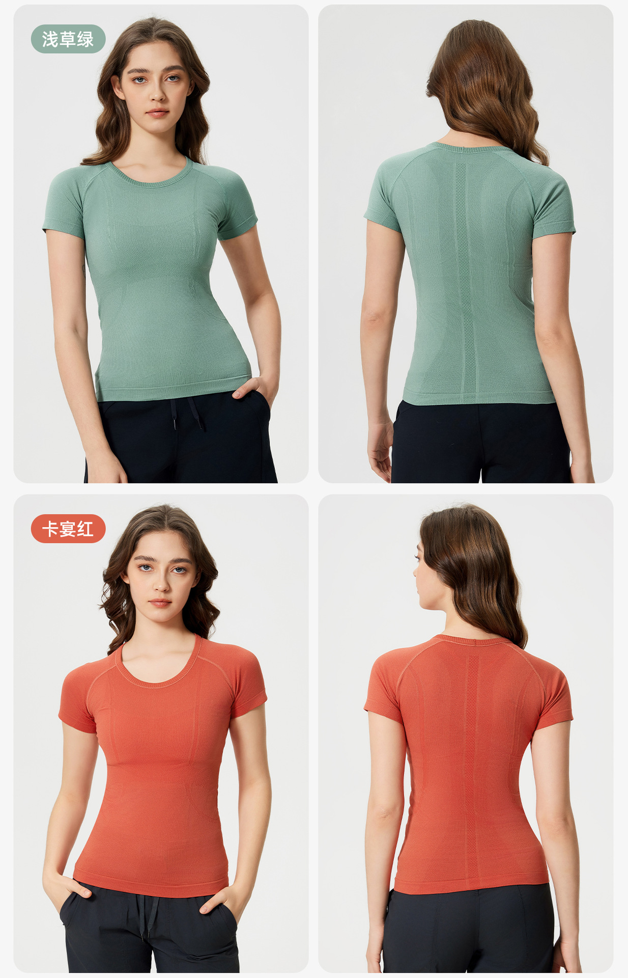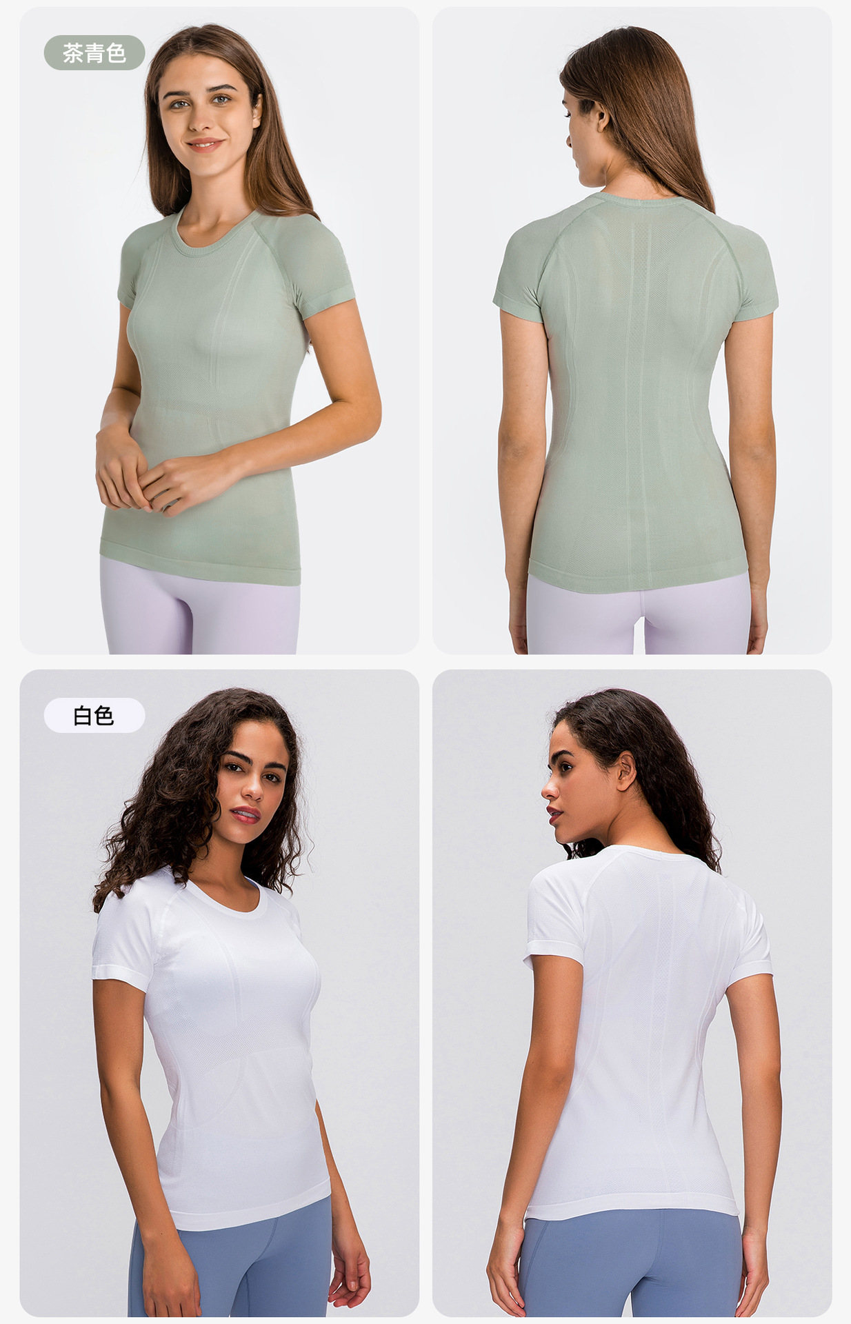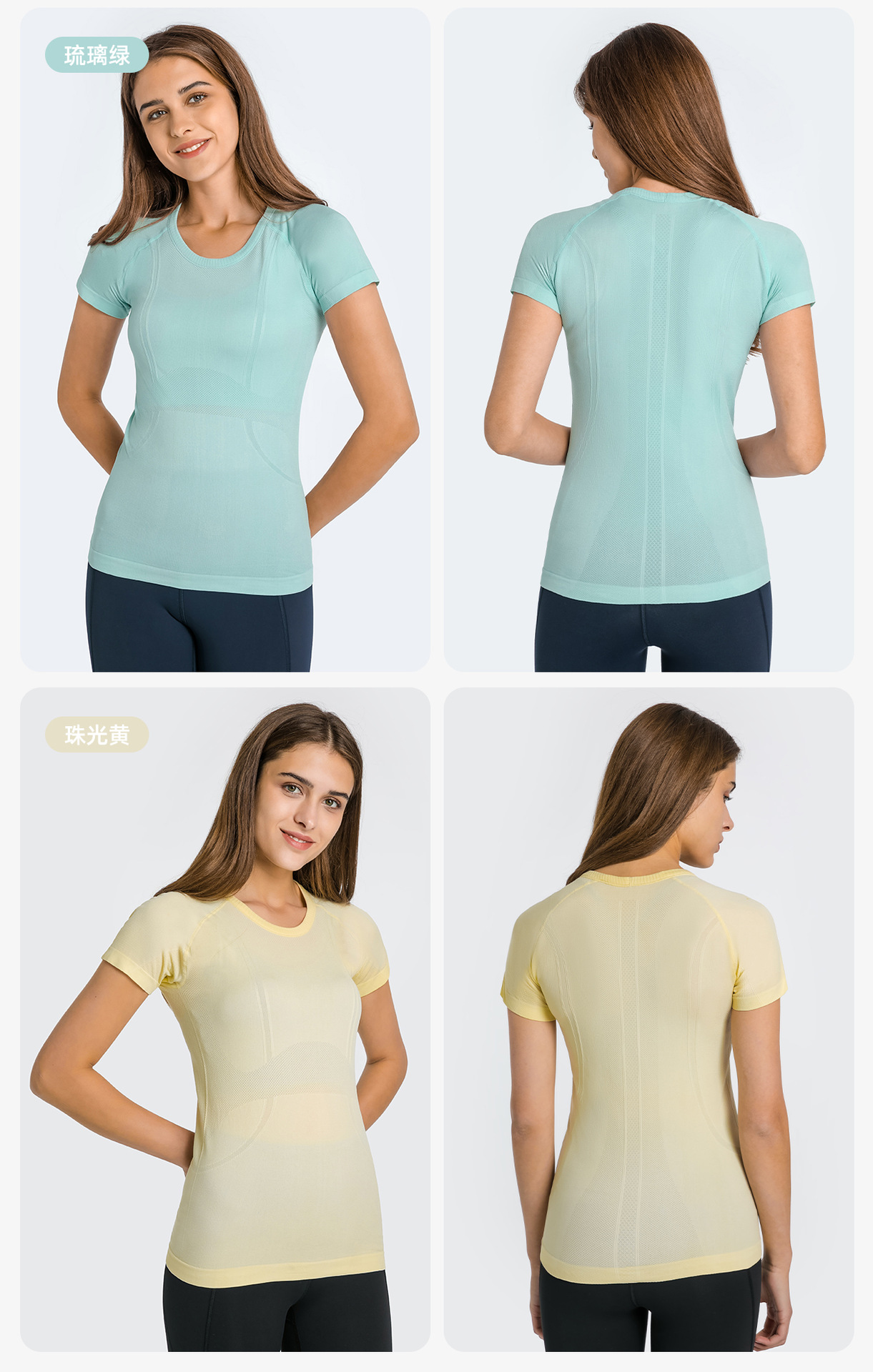 새로운 반팔 크루 넥 스포츠 티셔츠 달리기 피트니스 탑 여성 슬림핏 통기성 요가 세트 여름 S2067스토어 가기