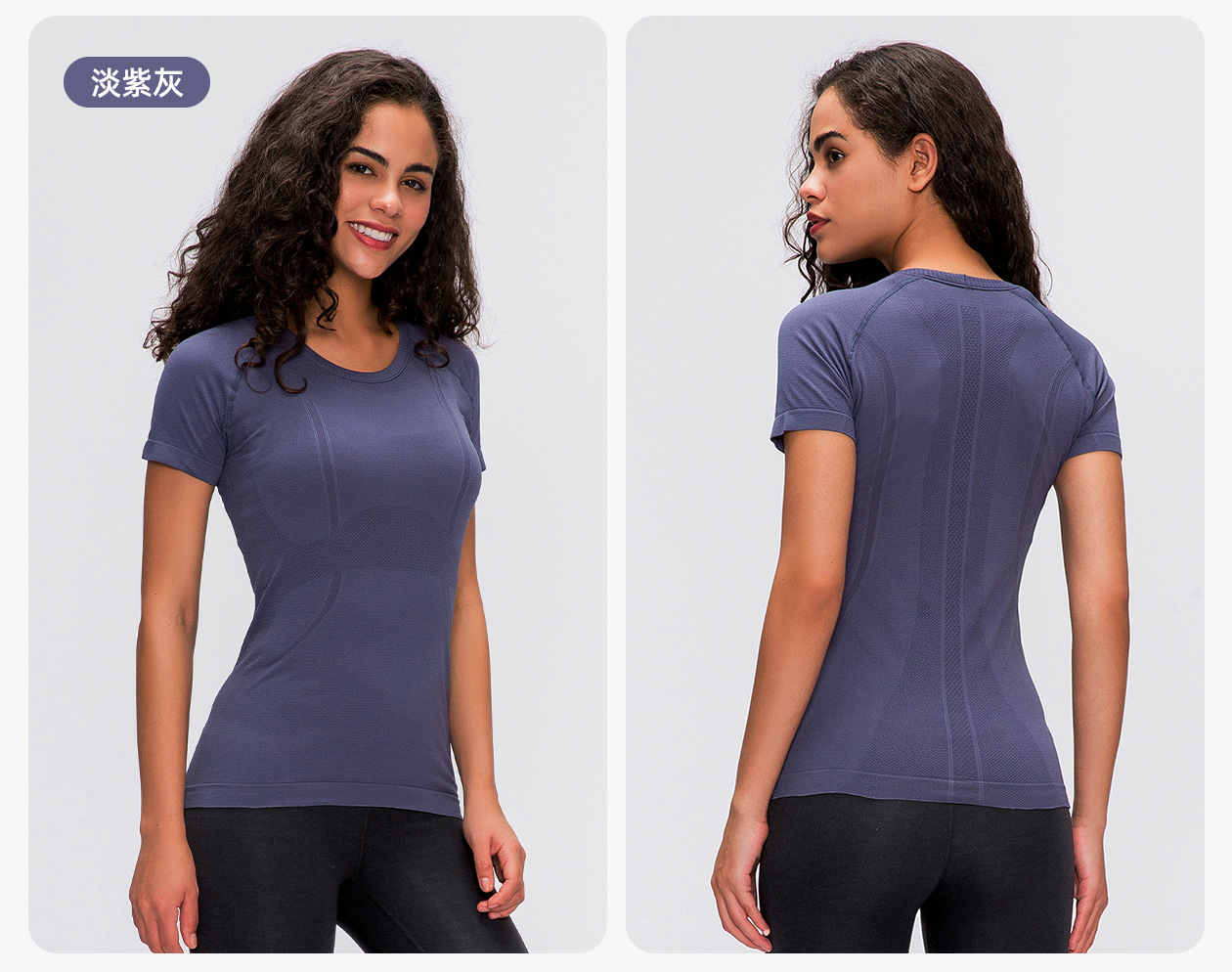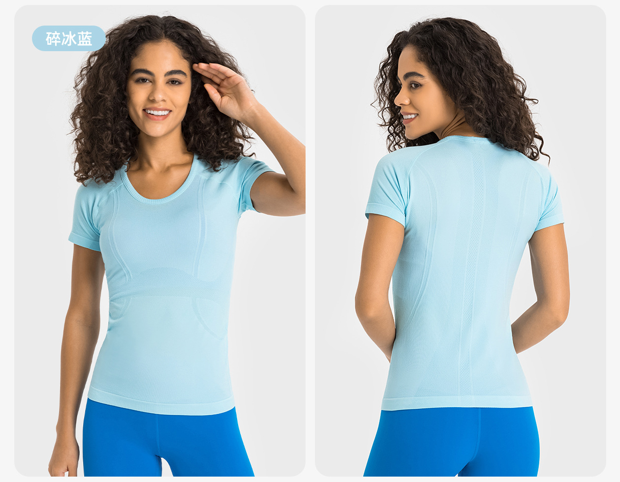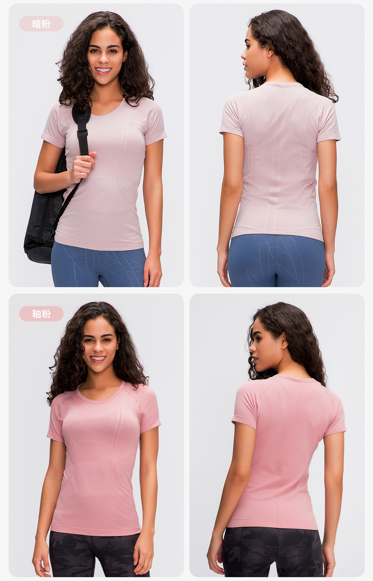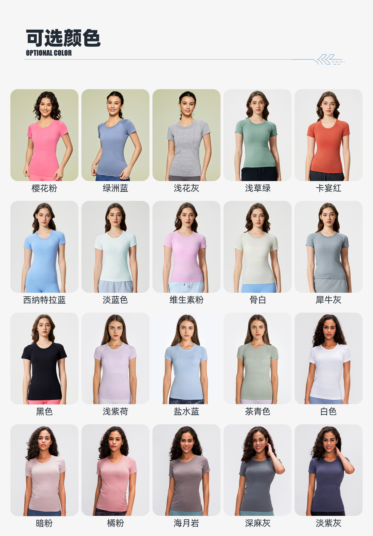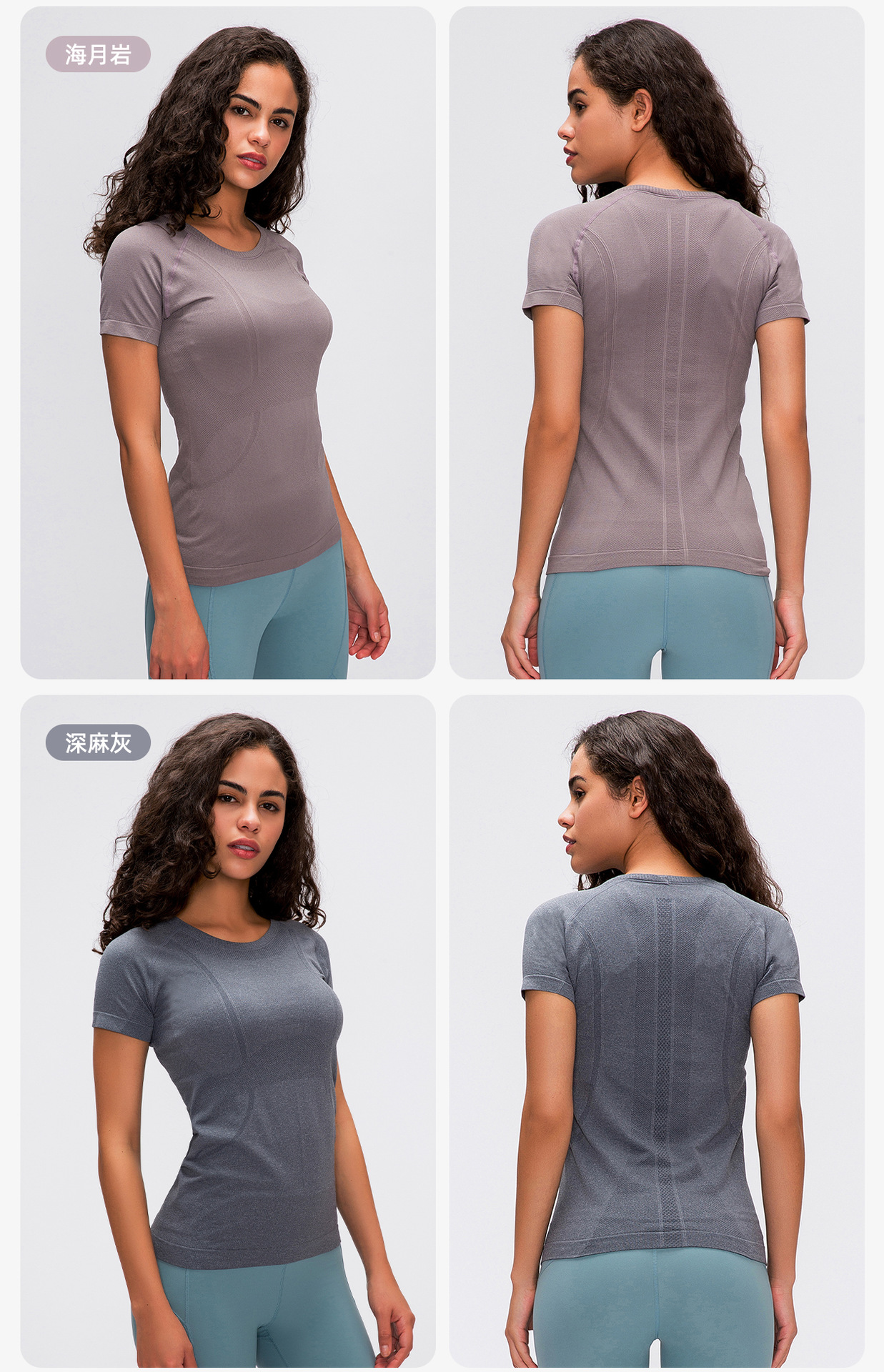 새로운 반팔 크루 넥 스포츠 티셔츠 달리기 피트니스 탑 여성 슬림핏 통기성 요가 세트 여름 S2067스토어 가기