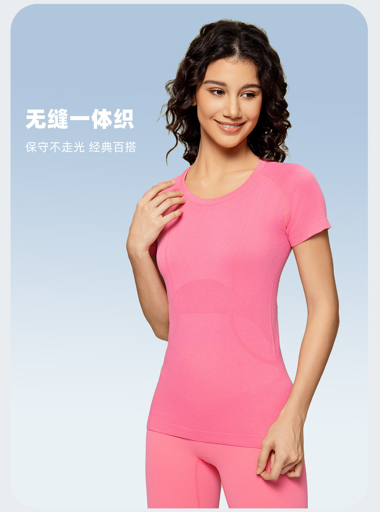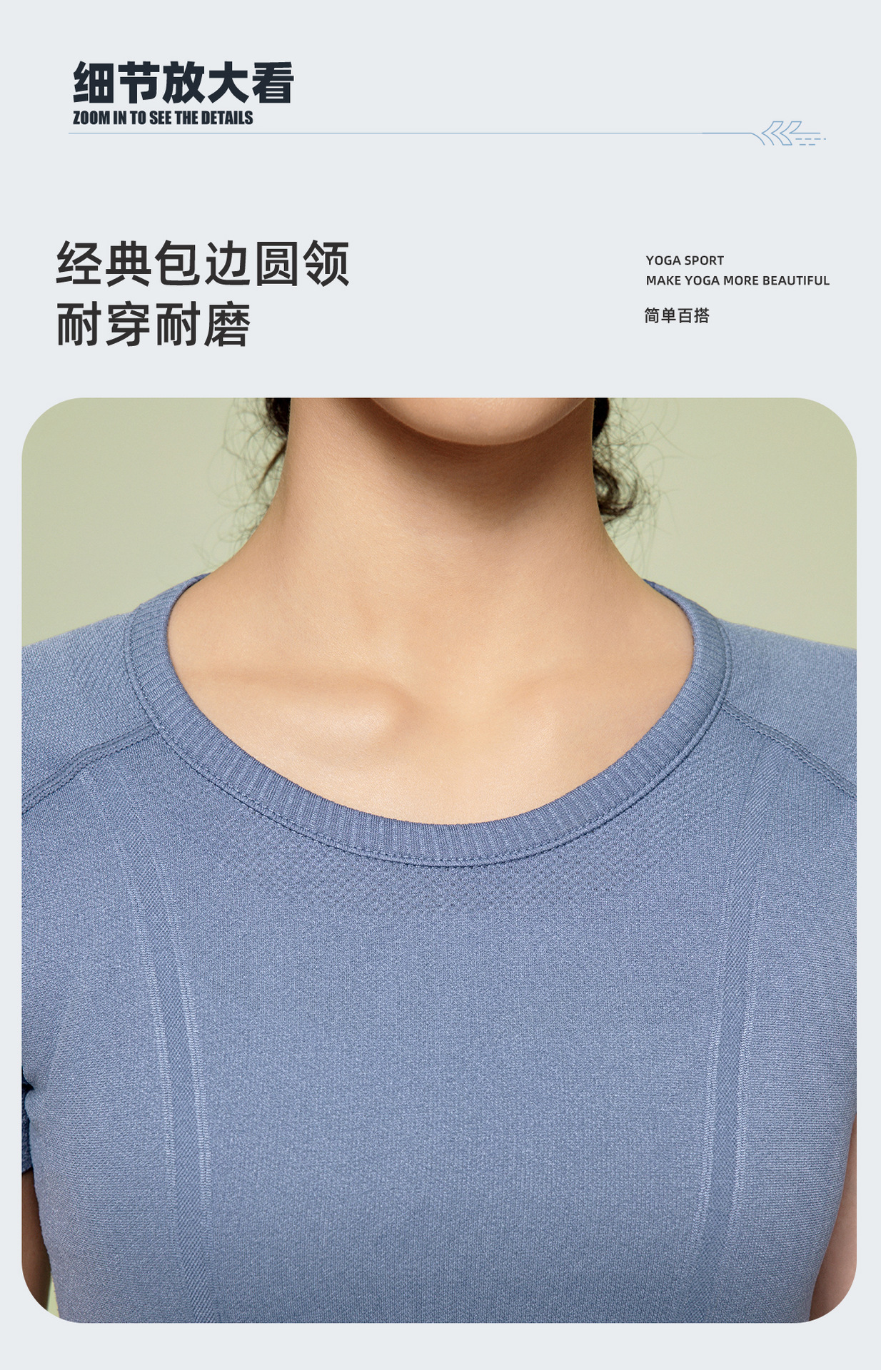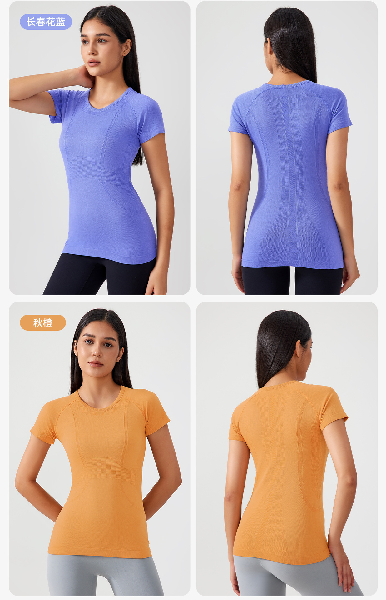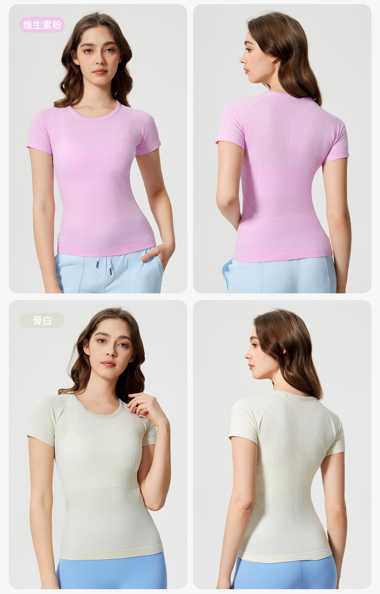 새로운 반팔 크루 넥 스포츠 티셔츠 달리기 피트니스 탑 여성 슬림핏 통기성 요가 세트 여름 S2067스토어 가기