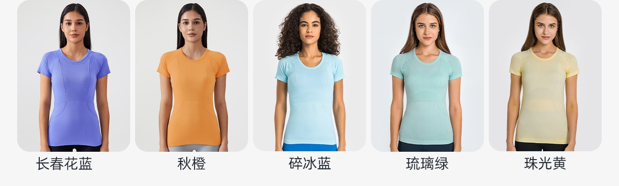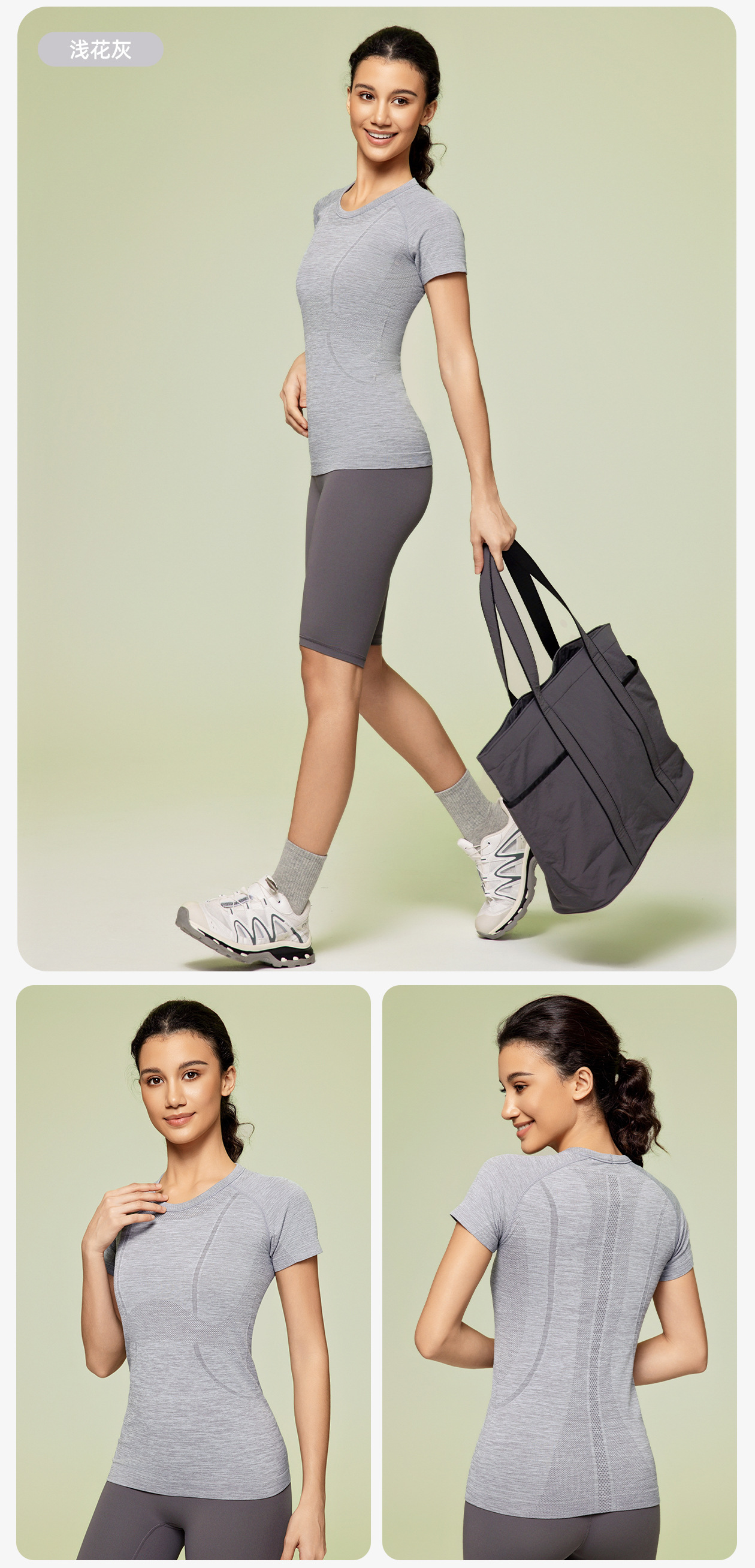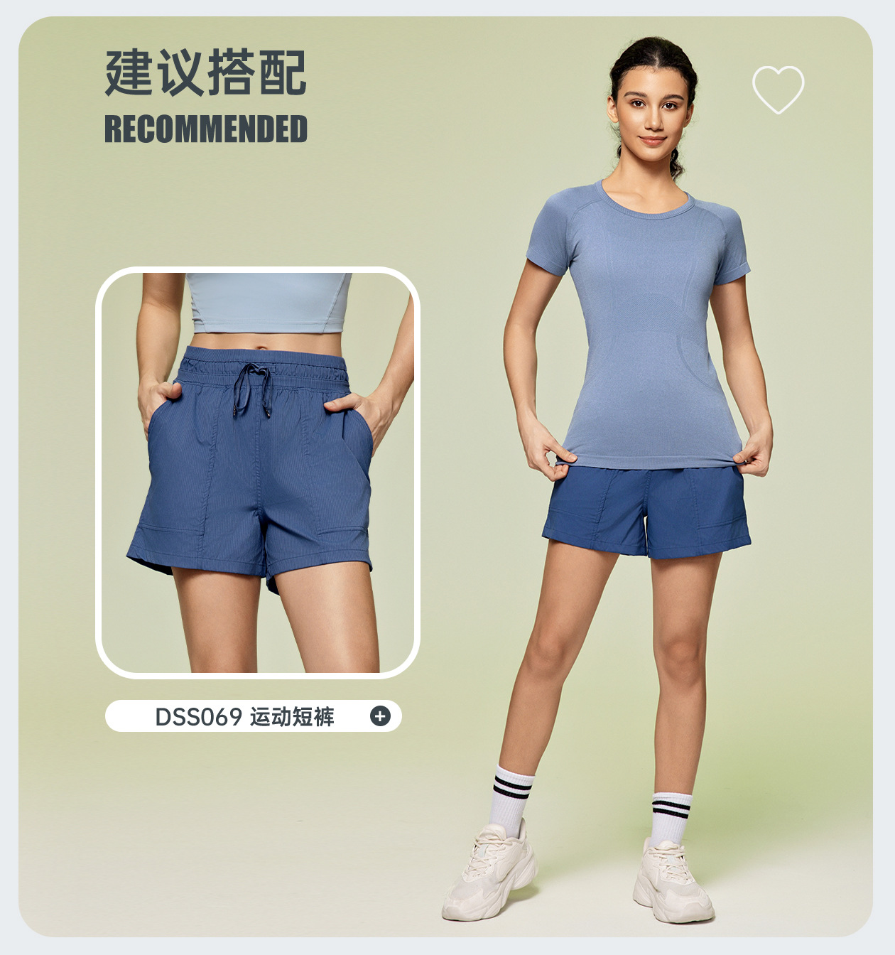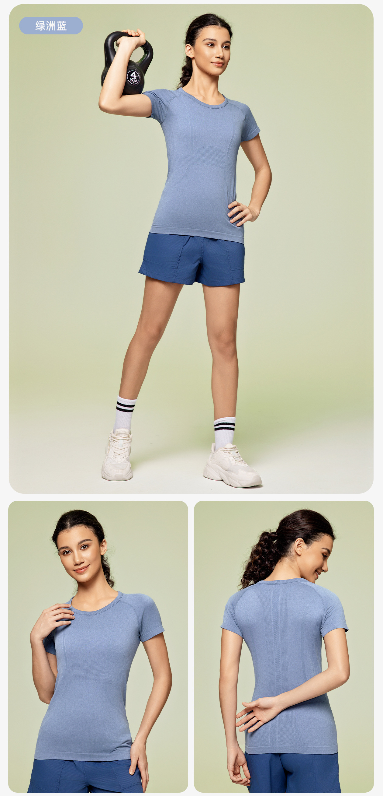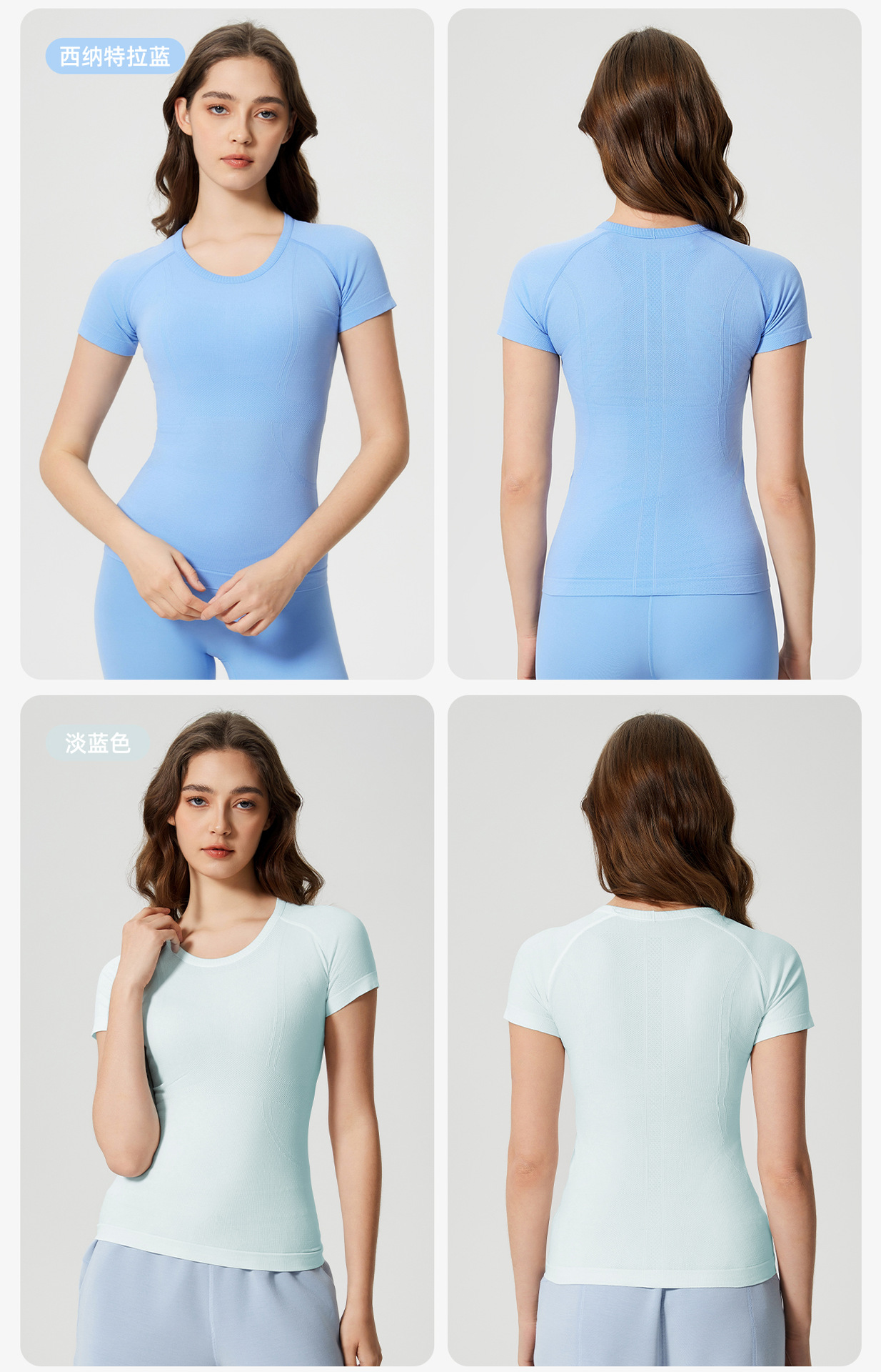 새로운 반팔 크루 넥 스포츠 티셔츠 달리기 피트니스 탑 여성 슬림핏 통기성 요가 세트 여름 S2067스토어 가기