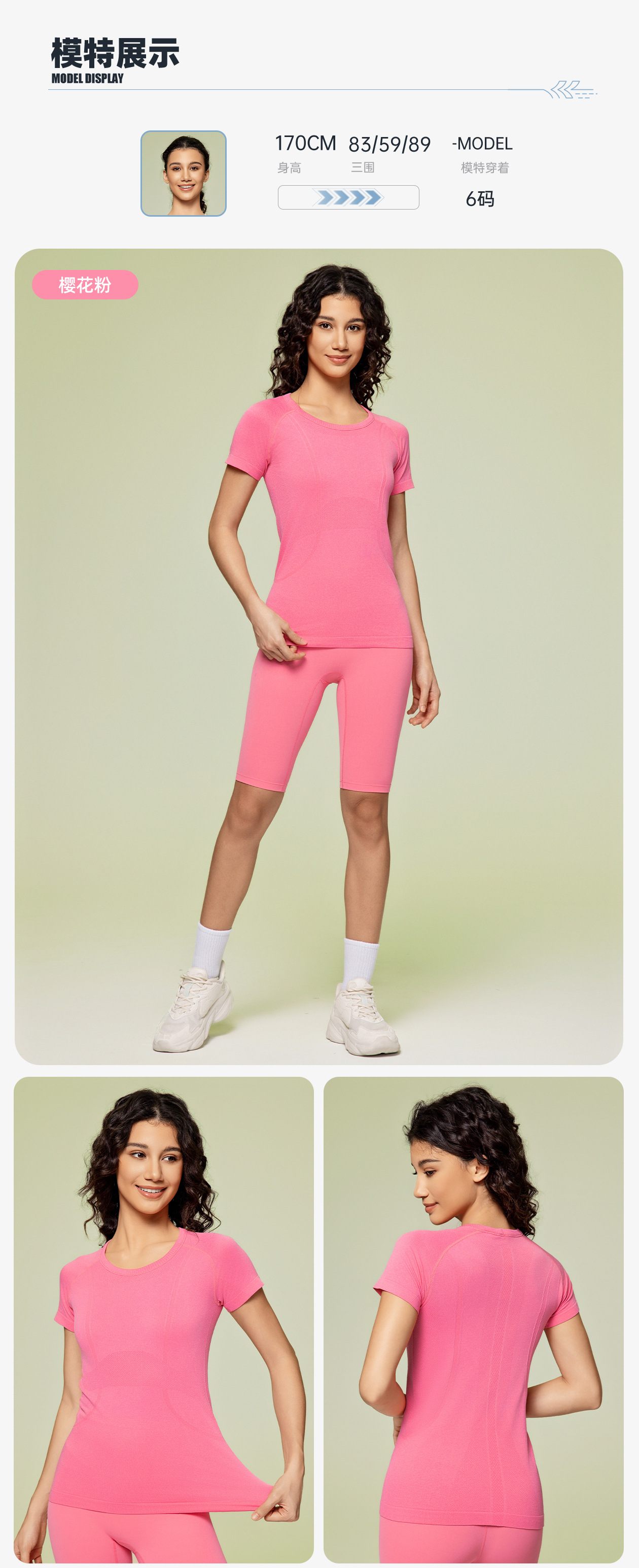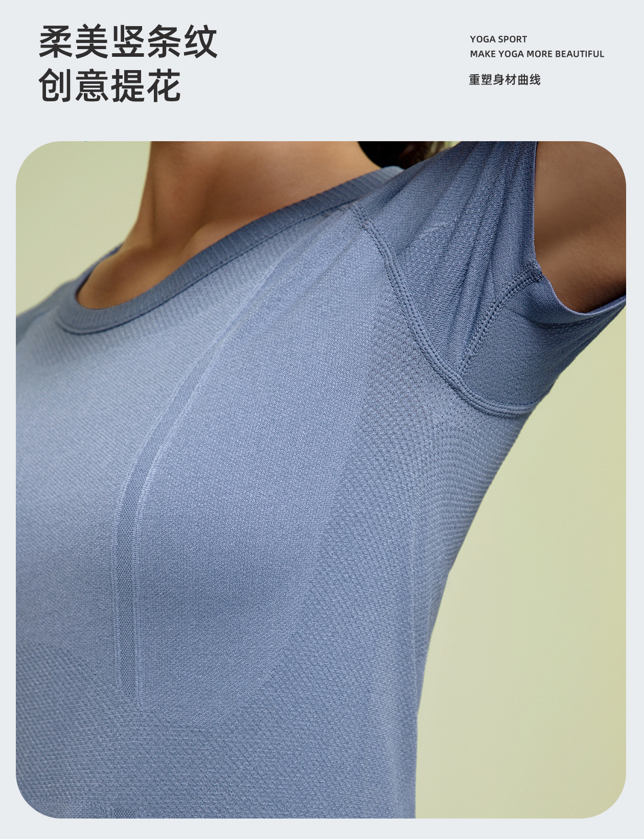 새로운 반팔 크루 넥 스포츠 티셔츠 달리기 피트니스 탑 여성 슬림핏 통기성 요가 세트 여름 S2067