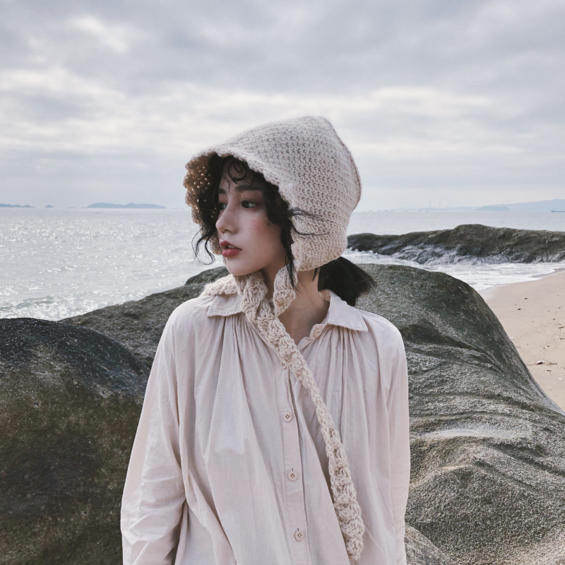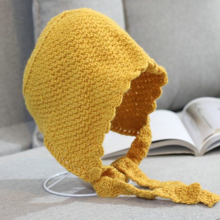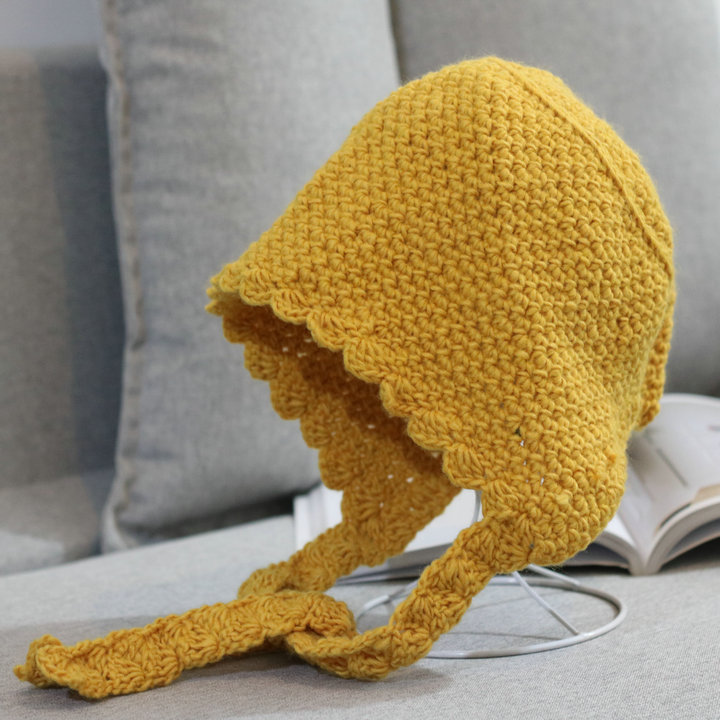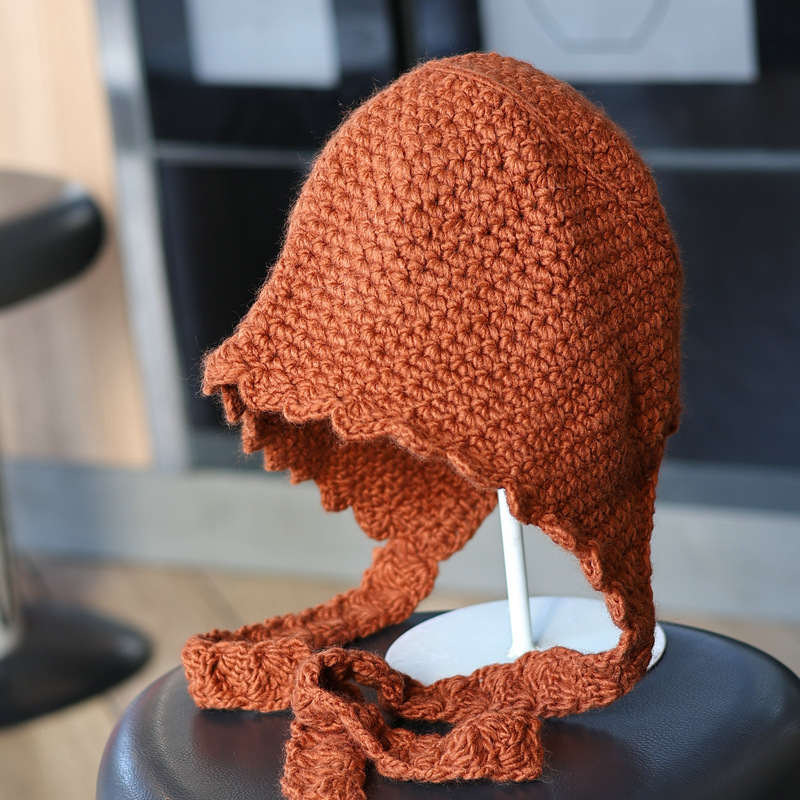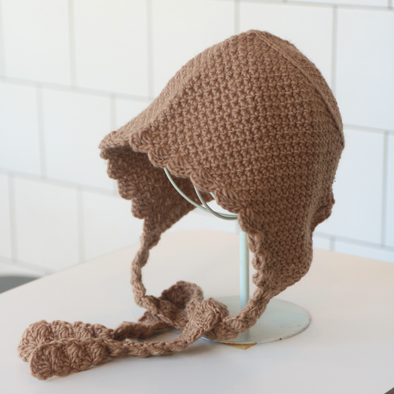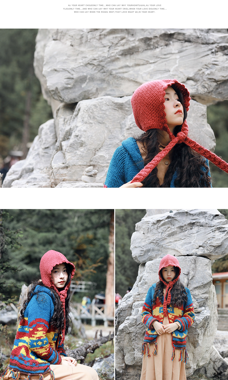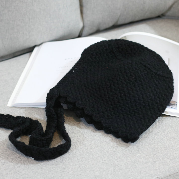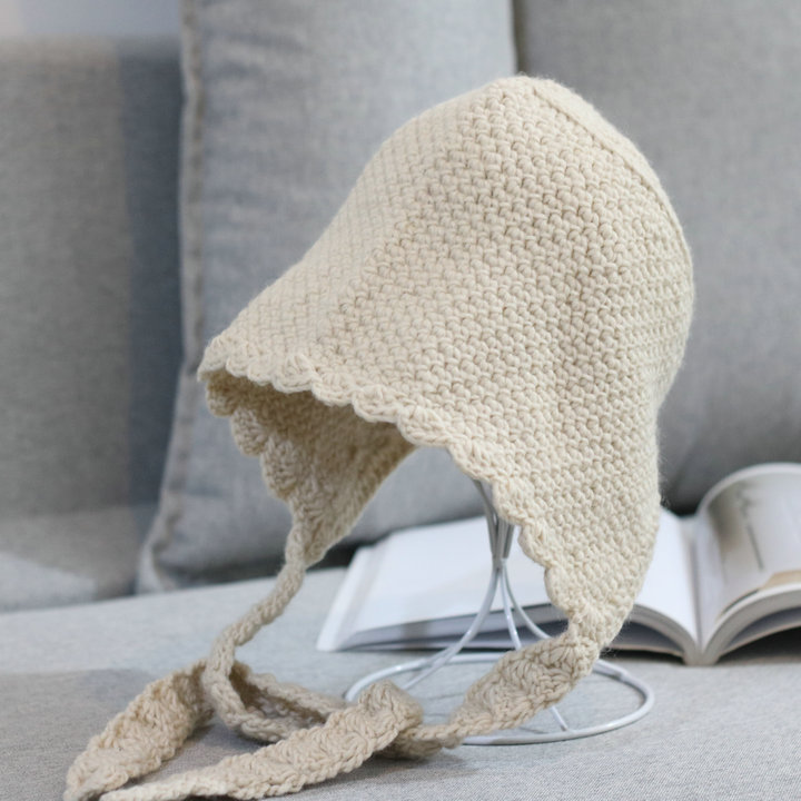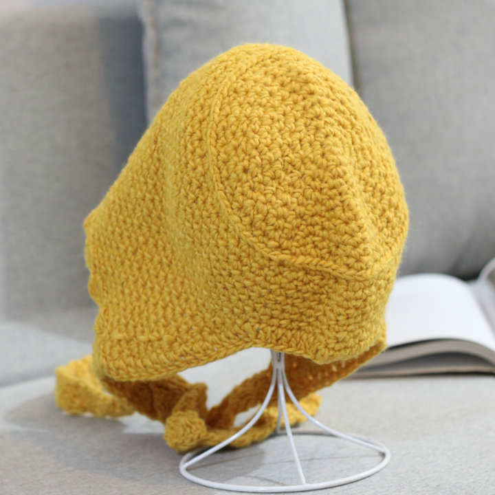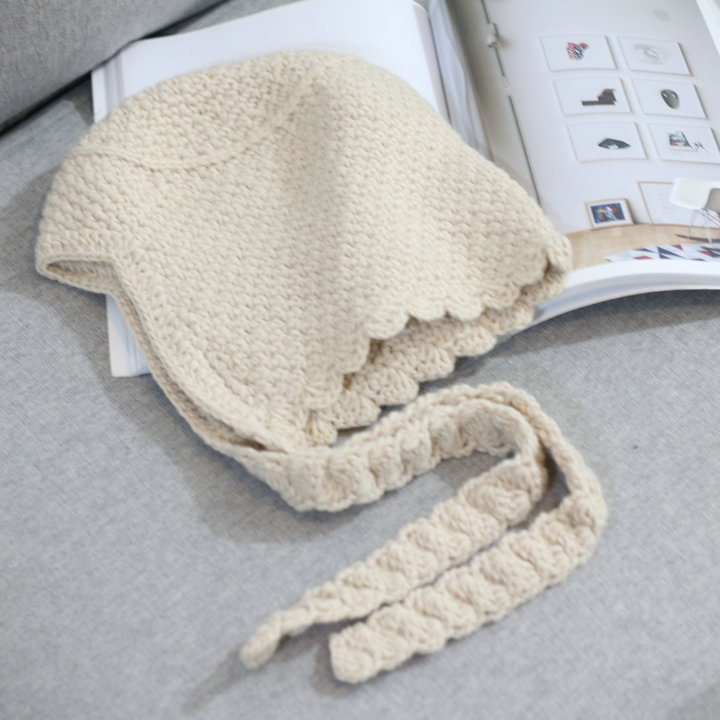 프랑스 스타일 레트로 팰리스 스타일 레이스 업 어부 모자 일본 스타일 수제 양모 니트 달콤한 로리 이어 보호 모자 겨울 여성스토어 가기
