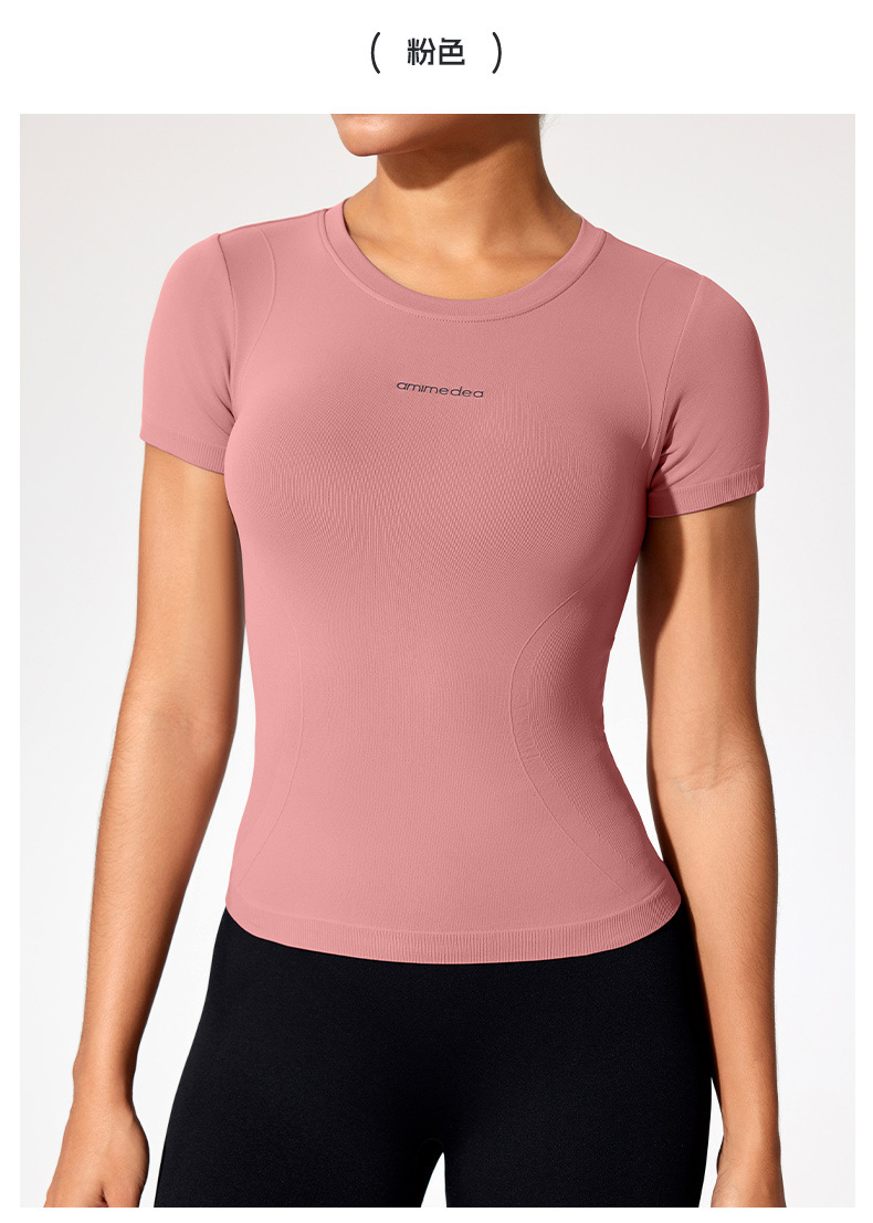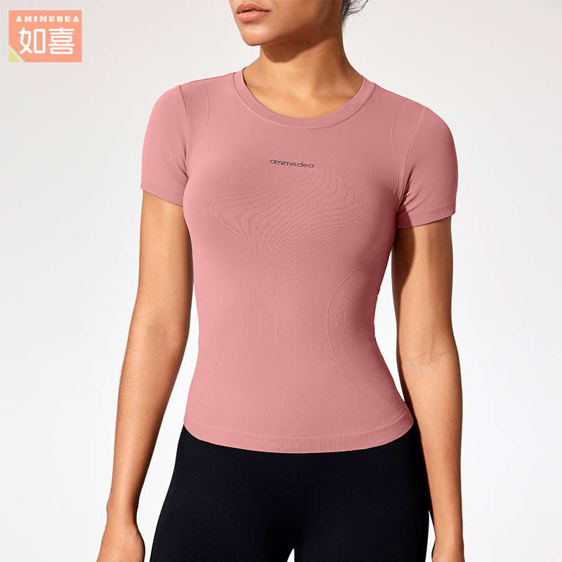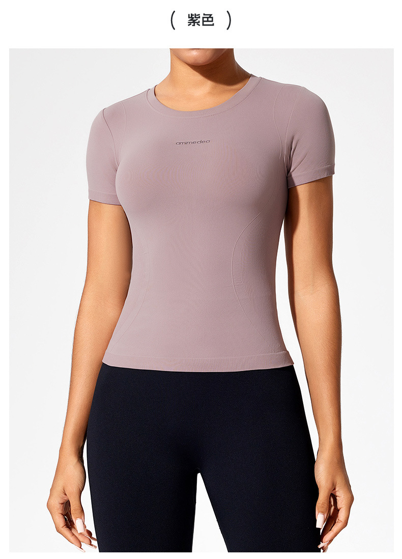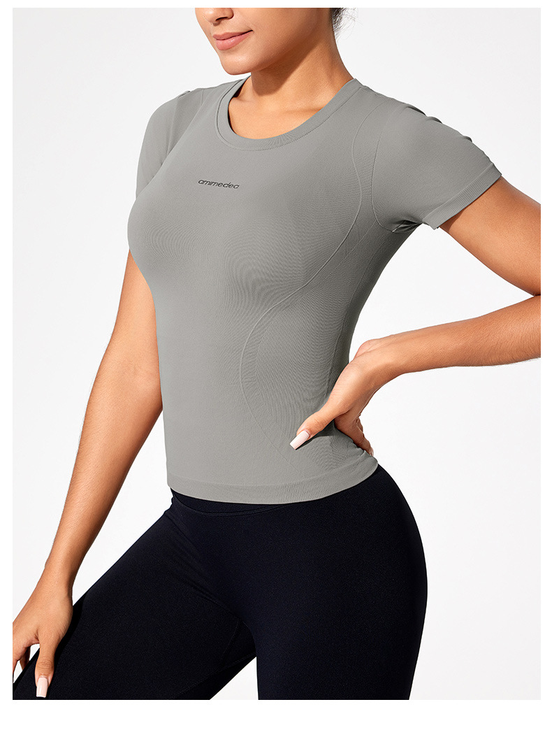재고 섹시 슬림 스포츠 최고 여성 여름 온라인 인기 피트니스 티셔츠 짧은 소매 실행 꽉 스트레치 요가 옷