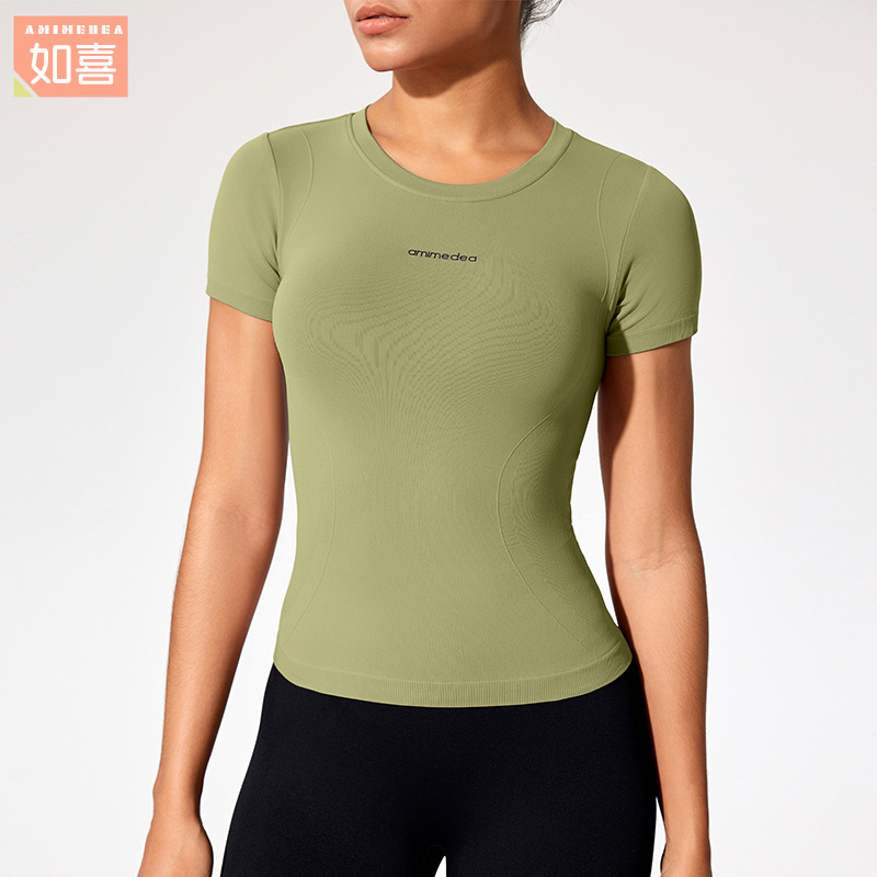재고 섹시 슬림 스포츠 최고 여성 여름 온라인 인기 피트니스 티셔츠 짧은 소매 실행 꽉 스트레치 요가 옷스토어 가기