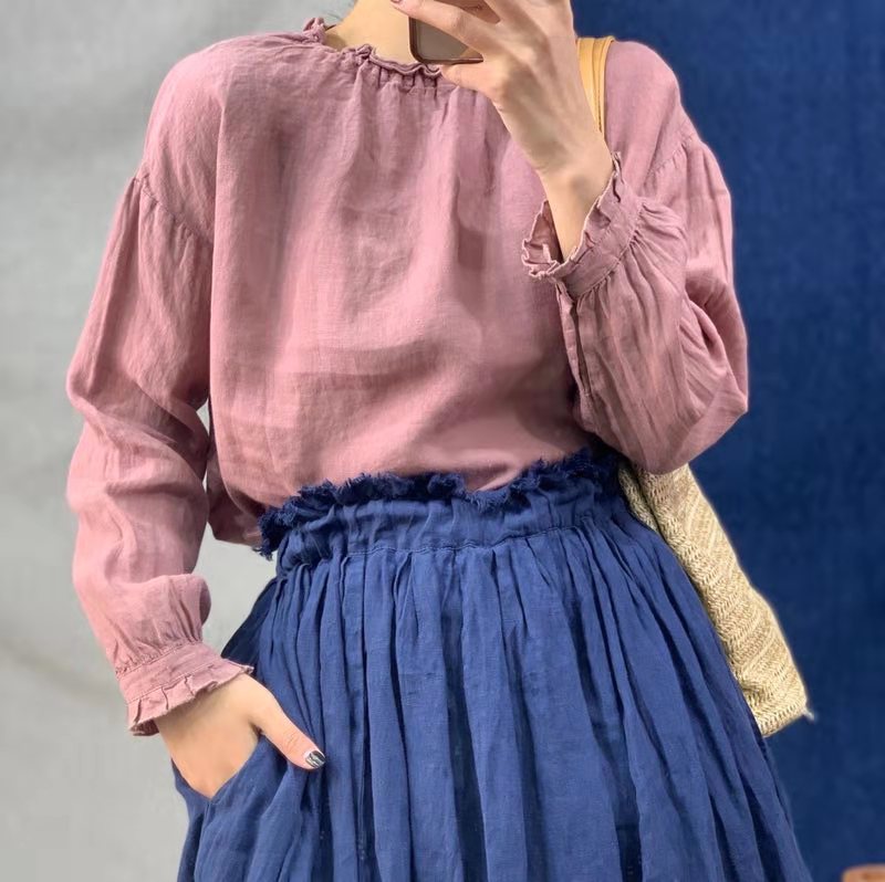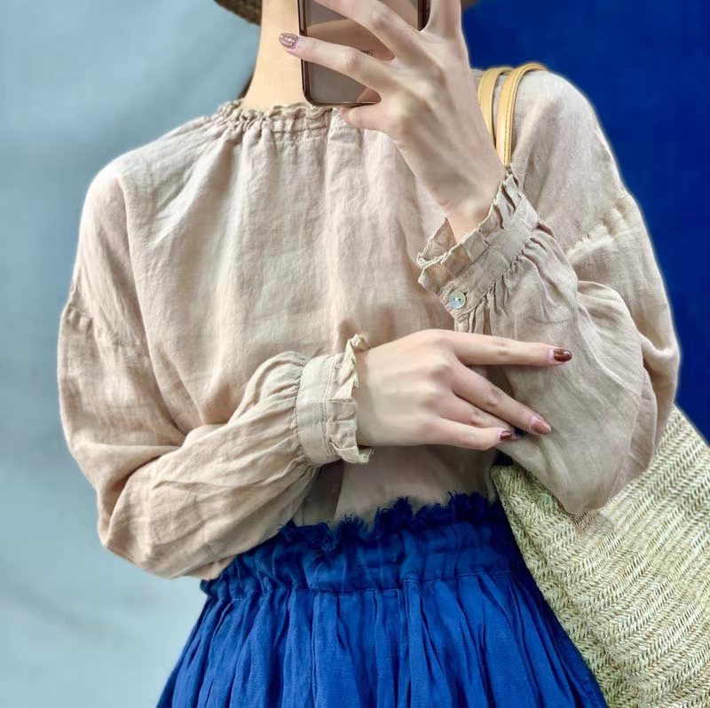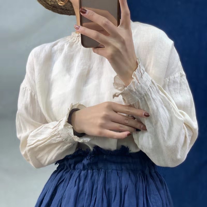 봄 2022 새로운 긴팔 여성용 셔츠 린넨 느슨한 문학 긴팔 여성용 셔츠 탑 공장 아울렛스토어 가기