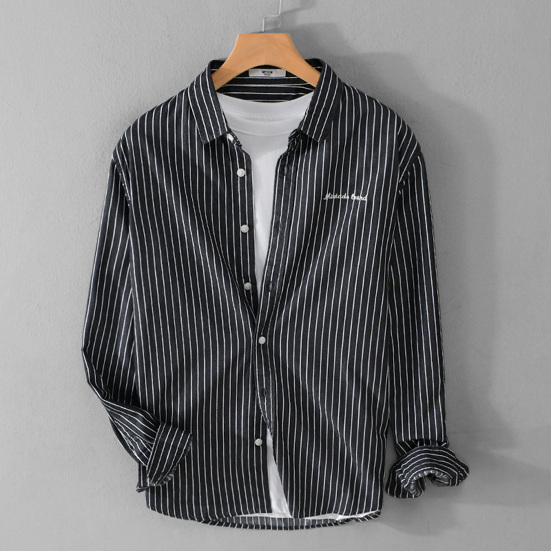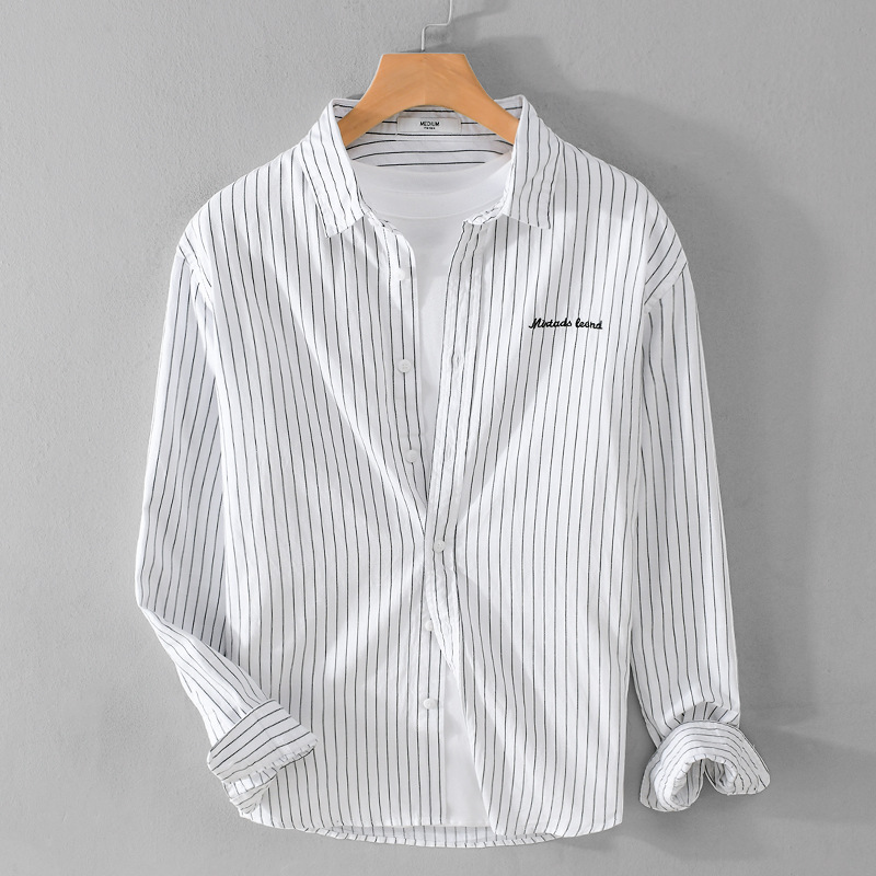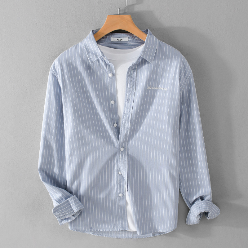 봄과 가을 스트라이프 남성용 긴팔 셔츠 신선한 스타일 한국 스타일 순면 캐주얼 트렌디 남성 셔츠 9306
