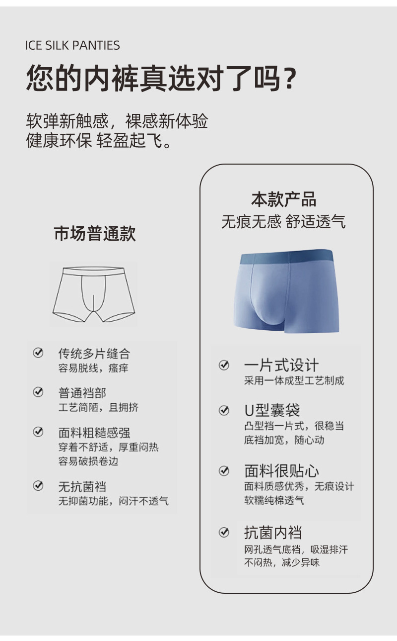 2026년 신상 남성 속옷 일본식 모달 통기성 봄여름 플랫앵글 노마크 중간 허리 사각팬티 편안함