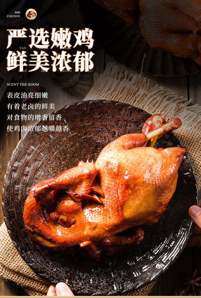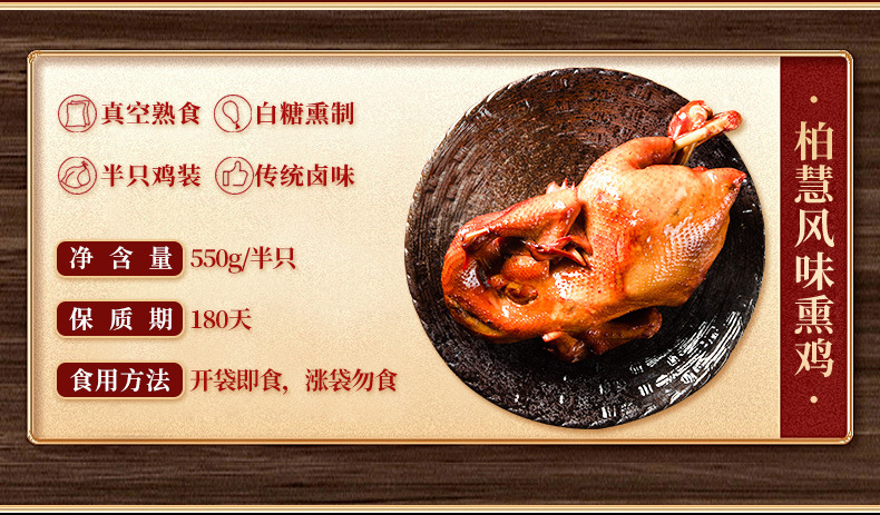 바이 후이 음식 훈제 치킨 550g 반 꿀 손 훈제 치킨 컨디셔닝 아로마 테라피 치킨 진공 와인 바로 먹을 수있는 로스트 치킨